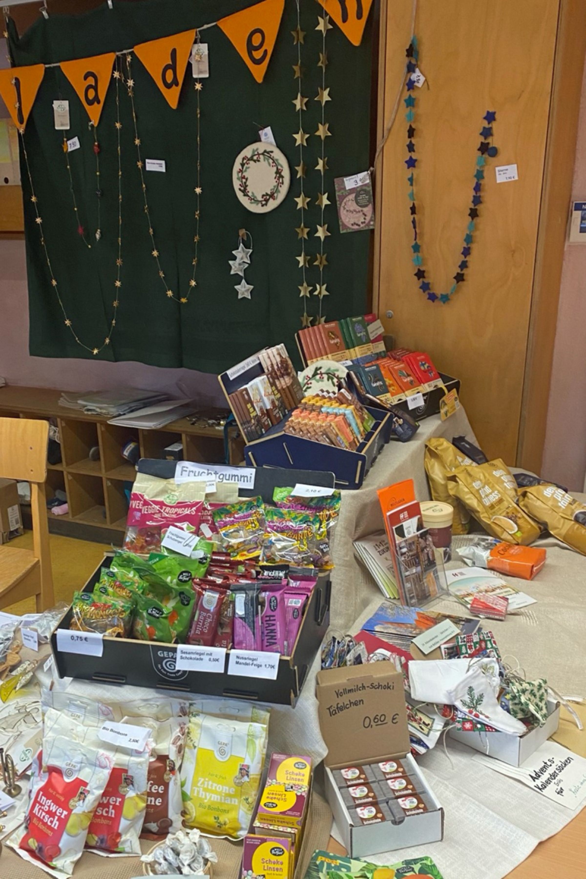 Sofort war sichtbar, bei welcher Schokolade die Kakaobäuer*innen gerecht bezahlt werden. Ein Kakaorätsel lies die Besuchenden grübeln und erstaunen über die wahren Zahlen. Von fairafric-Schokolade bis Sternenketten informierten und verkauften wir aus einen breiten Sortiment fairer Produkte. - 12. Dezember: In diesem Jahr fördert der Weltladen direkt die solidarische Beziehung zu geflüchtete Menschen in Bad Doberan in der Gemeinschaftsunterkunft. 40 Kinder erhielten zu Weihnachten einen besonderen Gruß. Gleichzeitig wurde der Segelkaffee mit dem Fahrrad weiter CO2-frei dorthin gebracht, so wie er per Fahrrad von Hamburg angeliefert wurde. Siehe Chronik oben am 3. September 2024.