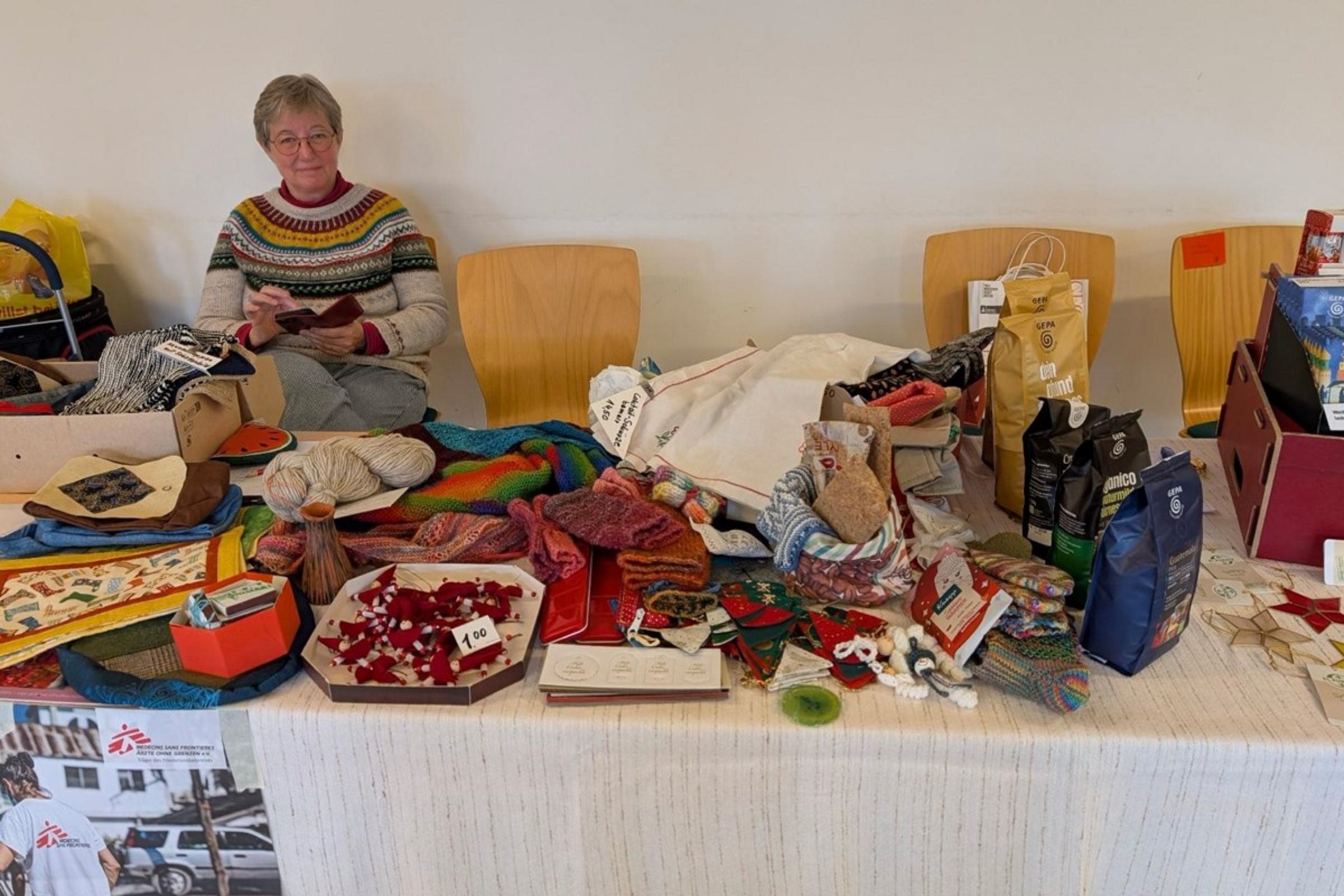 * erster Verkauf im Seitenschiff der Kirche vor der Abseite parallel zum Kirchenkaffee