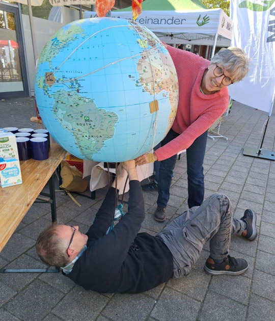 - 6. Juli: Zur Eröffnung des jährlichen Sommerfestes der Kirchengemeinde hat das Team des Weltladens in der Andacht die Peters Projektion der flächentreuen Weltkarte als Denkanstoß präsentiert: