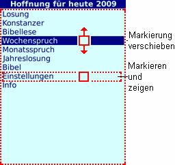 Die Java-Programme beinhalten auch Funktionen für Touchscreen-Handys. Nachfolgend finden Sie dazu einige Tipps. Hinweis: Wegen Lizenzablauf ist der Momento (Konstanzer Kalender) ab 2014 nicht mehr Bestandteil der Programme "Hoffnung für heute"!