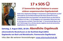 VeranstaltungGeistliche Abendmusik mit Stefan Zeitz 02.08.2025 · 18:00 Uhr · 19:00 Uhr JohanneskircheAlte Wolgaster Straße 17509 Wusterhusen Im Kalender speichern (.ics) Route berechnen zurück zur Übersicht der Veranstaltungen StartseiteGottesdienste und VeranstaltungenGruppen und KreiseGemeindebriefeJohanneskirche WusterhusenFriedhofPetrikirche LubminBethlehemkirche SpandowerhagenKontakt und MitarbeitendeAnmelden