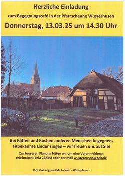 VeranstaltungBegegnungscafe 13.03.2025 · 14:30 Uhr · 15:30 Uhr PfarrscheuneAlte Wolgaster Straße 617509 Wusterhusen Im Kalender speichern (.ics) Route berechnen zurück zur Übersicht der Veranstaltungen StartseiteGottesdienste und VeranstaltungenGruppen und KreiseGemeindebriefeJohanneskirche WusterhusenFriedhofPetrikirche LubminBethlehemkirche SpandowerhagenKontakt und MitarbeitendeAnmelden