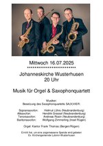 VeranstaltungKonzert für Orgel und Saxophonquartett 16.07.2025 · 20:00 Uhr · 21:00 Uhr JohanneskircheAlte Wolgaster Straße 17509 Wusterhusen Dateien ansehenherunterladen Im Kalender speichern (.ics) Route berechnen zurück zur Übersicht der Veranstaltungen StartseiteGottesdienste und VeranstaltungenGruppen und KreiseGemeindebriefeJohanneskirche WusterhusenFriedhofPetrikirche LubminBethlehemkirche SpandowerhagenKontakt und MitarbeitendeAnmelden