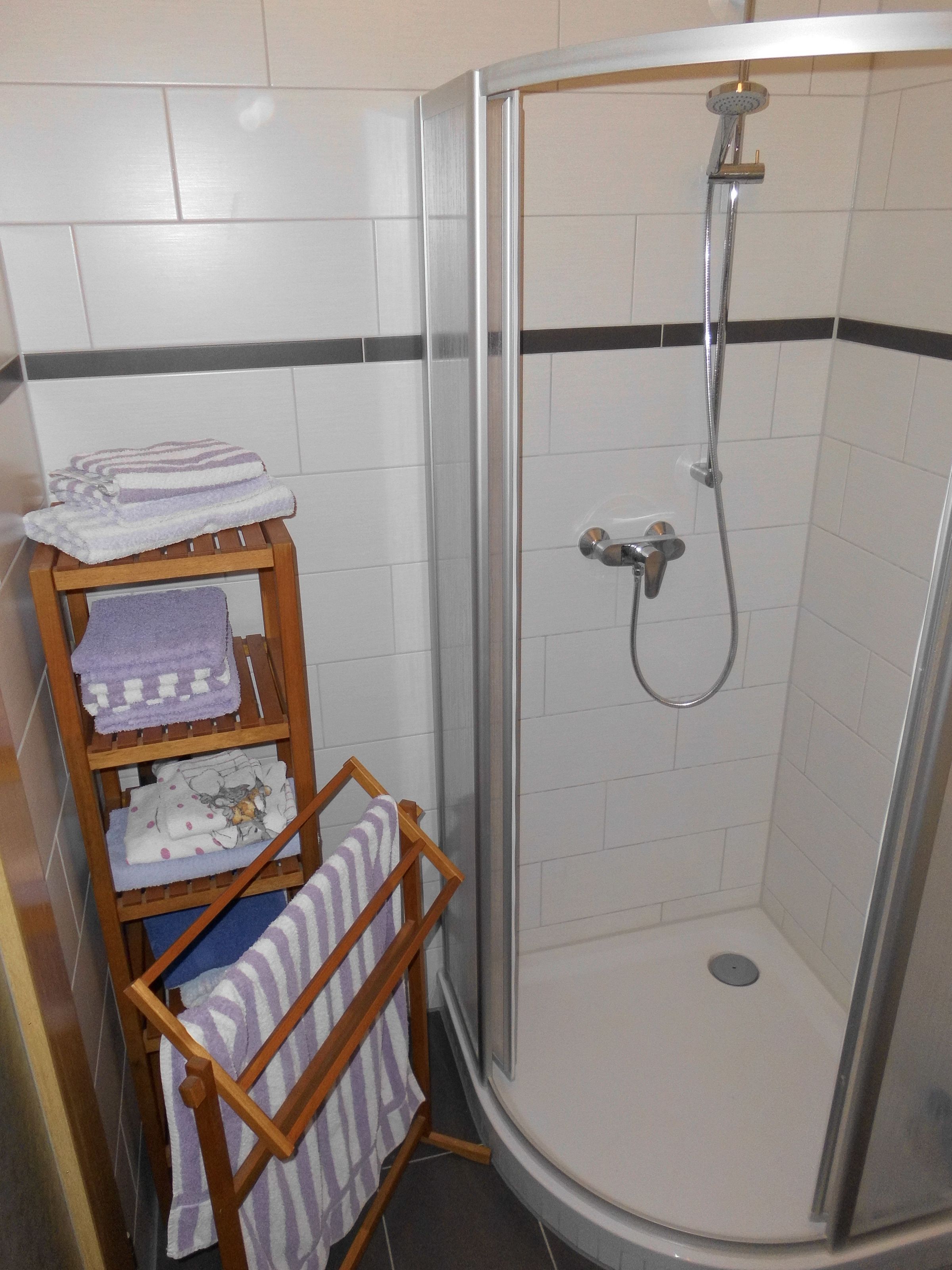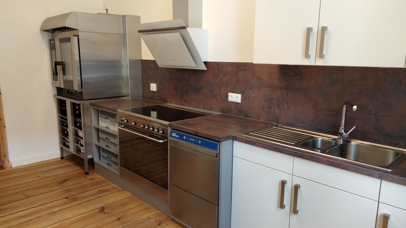 Zwei separate Sanitärräume mit jeweils zwei Duschen und Toiletten sind ebenfalls vorhanden. Im Erdgeschoss kann man in einer modernen Gruppenküche die Selbstverpflegung zubereiten. Der Gruppenraum gleich nebenan bietet genügend Platz zum Essen. Unser große Garten ist zum Spielen bestens geeignet.
