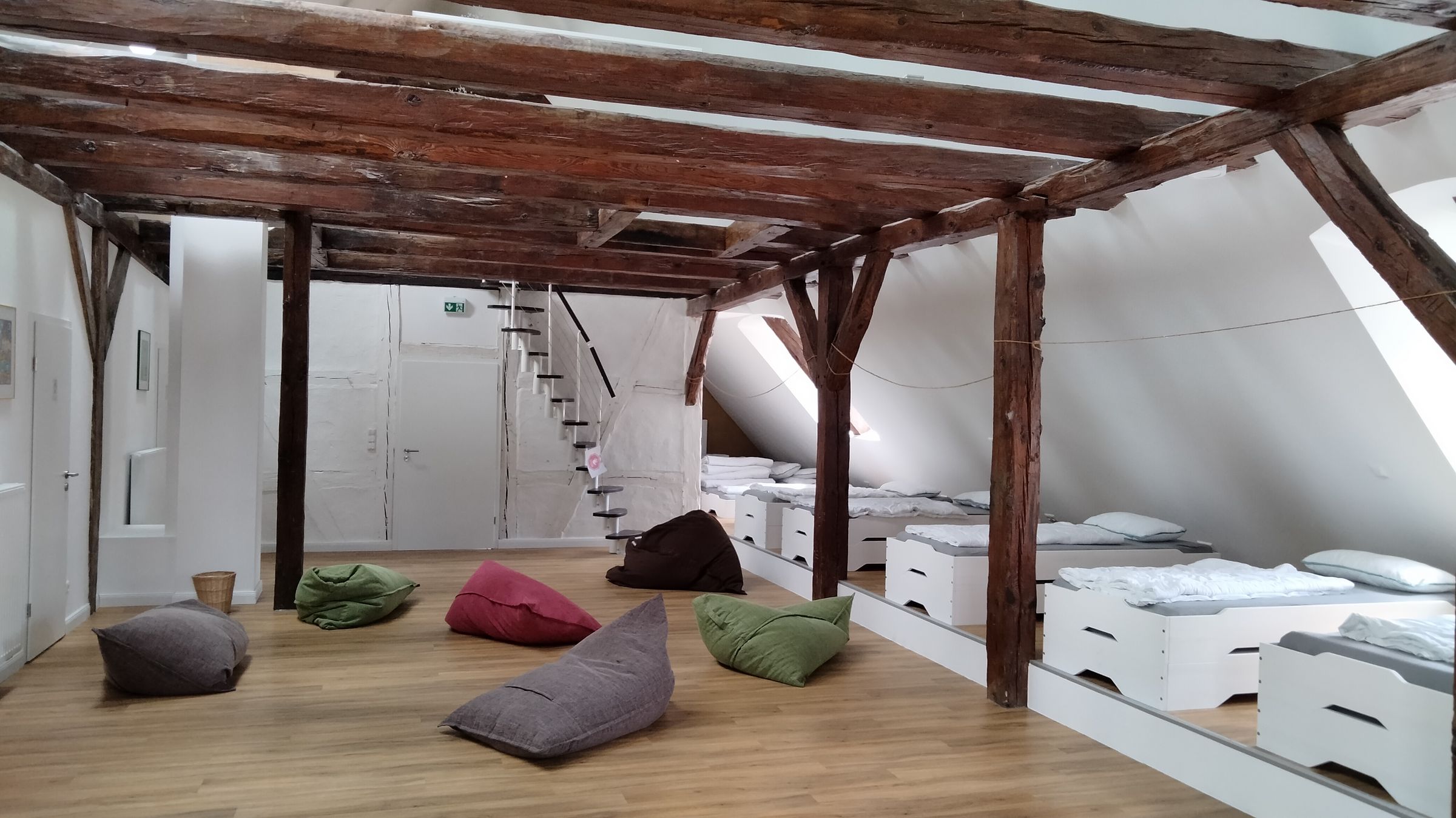 Das evangelische Pfarrhaus bietet ein sehr schönes Gruppenquartier für Kinder und Jugendliche mit bis zu 24 Plätzen an. Geschlafen wird auf dem 2022 ausgebauten Dachboden. Ähnlich wie auf den Berghütten in den Alpen laden gemütliche Betten als modernes Lager zum Übernachten ein.