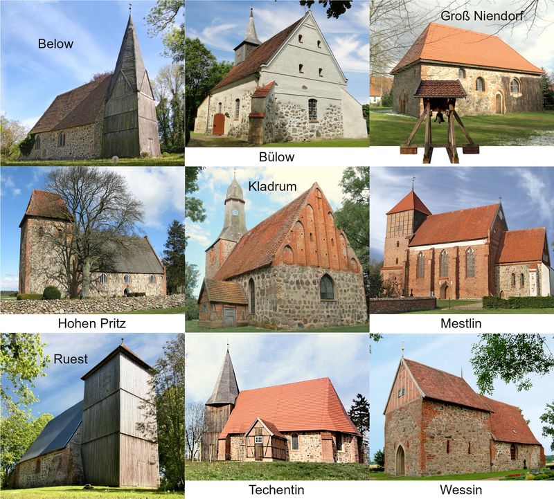 Die Evangelisch-Lutherische Kirchengemeinde Mestlin-Techentin-Kladrum (Landkreis Ludwigslust-Parchim) umfasst die Orte: Augzin, Badegow, Below (Kirche), Bülow (Kirche), Dinnies, Groß Niendorf (Kirche), Hof Grabow, Hohen Pritz (Kirche), Kadow, Kladrum (Kirche), Klein Pritz, Kukuk, Langenhagen, Mestlin (Kirche), Mühlenhof, Radepohl, Ruest (Kirche), Techentin (Kirche), Vimfow, Wessin (Kirche), Zölkow und Zidderich.