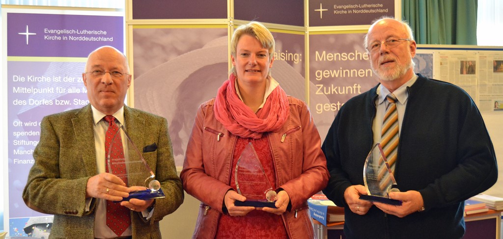 Der mit 1.500 Euro dotierte zweite Preis ging an Christine Matzen, Fundraiserin des Kirchenkreises Schleswig-Flensburg. 1.000 Euro hat die Gemeinde Kollmar (bei Itzehoe) für ihr Fundraising-Projekt "Spenden Sie Ihren Schrott" erhalten, mit dem für die Bilder ihrer Dorfkirche sammelt.