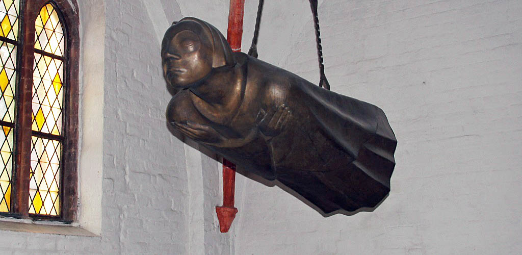 Barlach war in einem protestantischen Elternhaus aufgewachsen, aber kein regelmäßiger Kirchgänger. Und doch ging er doch davon aus, dass sich seine Werke gut in einen sakralen Raum fügen würden. Es entstanden Ehrenmale für den Güstrower und den Magdeburger Dom, der "Geistkämpfer" für die Stadtkirche Kiel und die "Gemeinschaft der Heiligen" für die Lübecker Katharinenkirche. Viele Werke fanden ihren Platz auch in der Güstrower Gertrudenkapelle, in der vor 60 Jahren das erste Barlach-Museum eröffnet worden war.