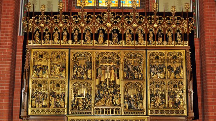 Der etwa 5,5 Meter breite und 4,5 Meter hohe Altar gilt als eines der größten und prächtigsten Bildschnitzwerke aus der Brüsseler Werkstatt des Jan Borman und zählt zu den bedeutendsten Schnitzaltären Norddeutschlands. Im Mittelschrein und auf den Flügeln zeigt er Szenen aus der Passionsgeschichte. Die sechs Gemälde der Rückwand stellen Maria, die heilige Katharina sowie die Apostel Petrus und Paulus dar.