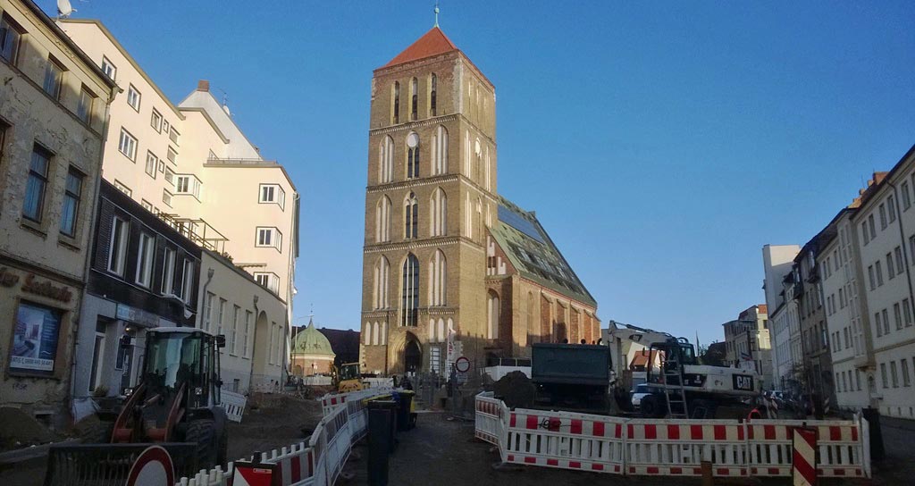 Noch eine Baustelle: Der Platz vor der Rostocker Nikolaikirche