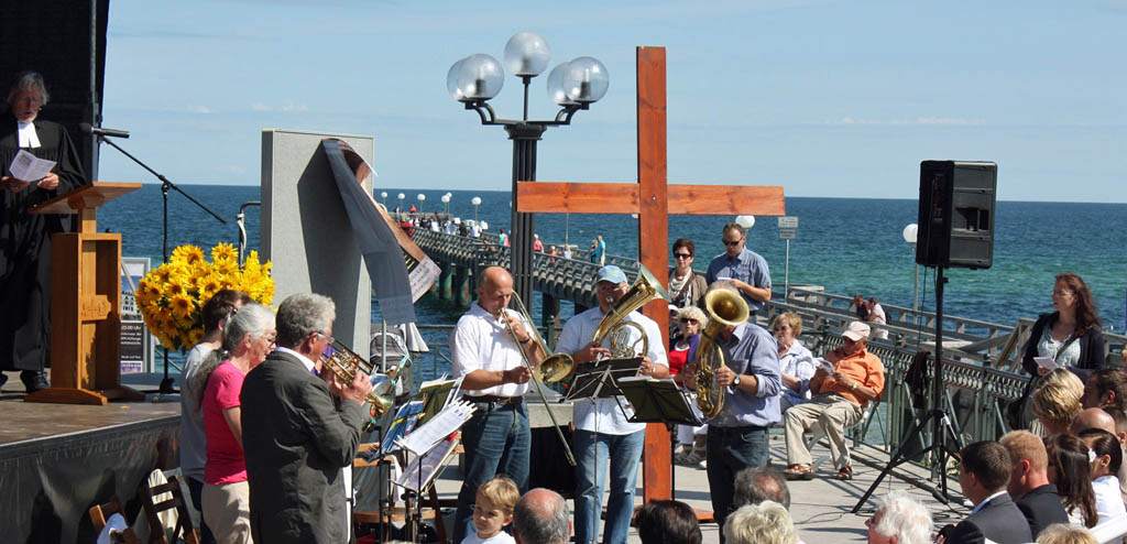 An zahlreichen Küstenorten der Ostsee werden am Sonntag (6. Juli) Seebrücken-Gottesdienste unter freiem Himmel gefeiert. Geplant sind Open-Air-Gottesdienste unter anderem in Kellenhusen, Heiligendamm, Boltenhagen, Kühlungsborn, Graal-Müritz und Wustrow. Die einzelnen Kirchengemeinden sind während der Gottesdienste telefonisch untereinander verbunden. So wird der Posaunenchor in Heiligendamm per Handy über die Lautsprecheranlage in Kellenhusen zu hören sein. Im Gegenzug wird die Psalmlesung aus Kellenhusen per Handy in Heiligendamm übertragen.