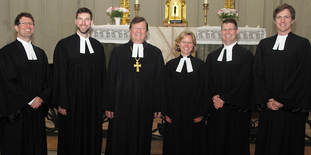 v.l. Christof Rau, Florian Niemöller, Bischof Dr. Hans-Jürgen Abromeit, Anna Marie Düring, Jens Haverland, Christian Bauer