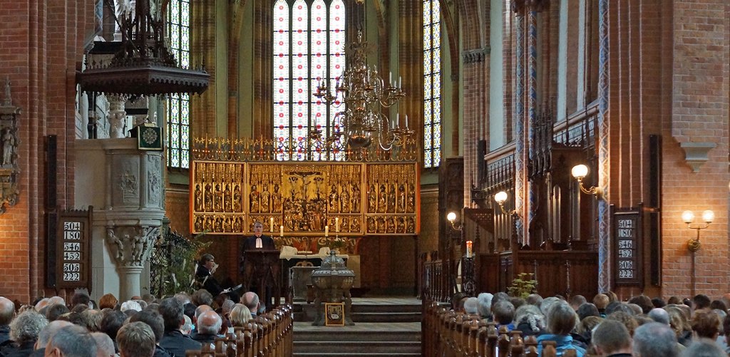 - Im Dom St. Nikolai Greifswald wird Bischöfin Kirsten Fehrs (Hamburg) predigen (10 Uhr). Vor dem anschließenden Kirchenkaffee spricht der ehemalige Präsident der Greifswalder Bürgerschaft, Dr. Thomas Meyer, ein Grußwort der Bürgerschaft.