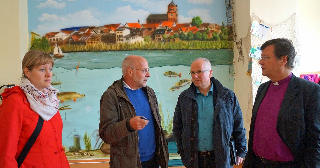„Die Kita bringt Kinder und ihre Eltern an die Gottesdienste und die Kirchengemeinde heran“, sagte Jürgen Hanke und nannte als Beispiele Advents-, Erntedank- und Schulanfangsgottesdienste. „Es ist wirklich wunderschön hier“, befand Propst Gerd Panknin nach dem Kita-Rundgang. Zum Abschluss des Besuchs in Wolgast nahmen Bischof und Propst noch an einer Sitzung des Kirchengemeinderates teil.