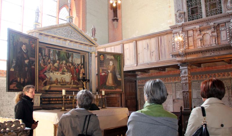 Im Vorjahr besuchten rund 15.000 Touristen das Kloster Rühn nahe Bützow – Tendenz steigend. Im Zentrum des Interesses steht der im 16. Jahrhundert gestaltete Altarraum, der angesichts des schlicht gestalteten Innenraumes sofort ins Auge fällt. In der Mitte des Altars ist die Abendmahlsszene dargestellt. Auf den beiden Seitenflügeln finden sich die Porträts von Ulrich I. (1527-1603), Herzog von Mecklenburg-Güstrow, und seiner Frau, der Herzogin Elisabeth von Dänemark und Norwegen (1524 – 1586).