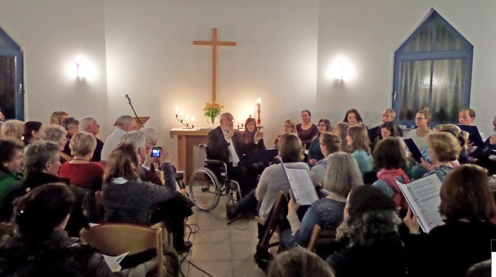 Hans-Peter Günther im Rollstuhl bei der Andacht