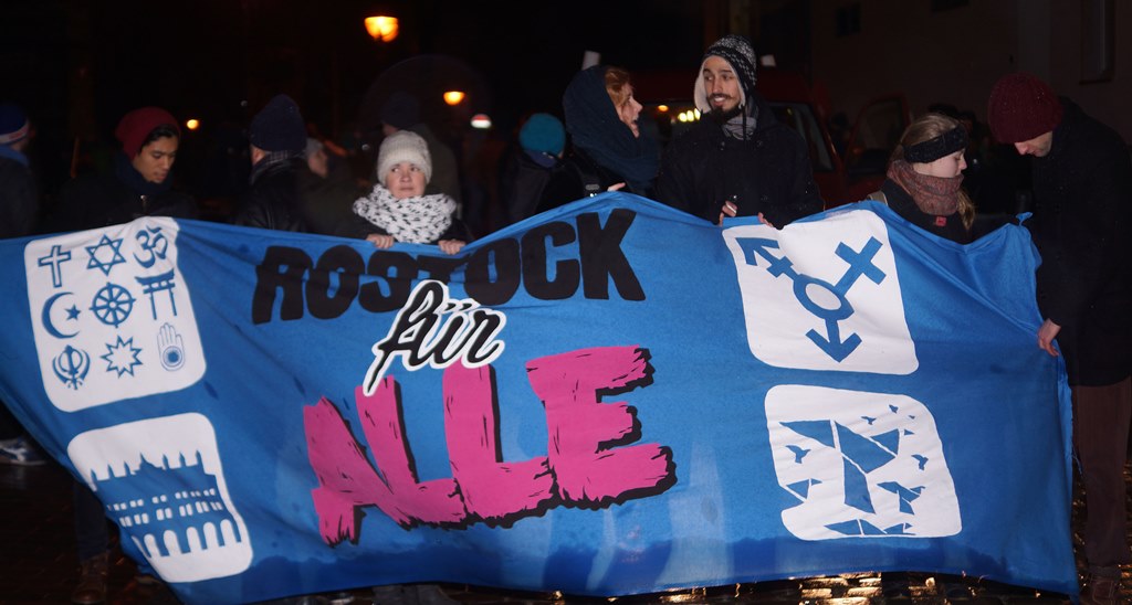 Insgesamt rund 1.800 Menschen zählte die Polizei in Rostock bei vier Gegenaktionen zu "Rogida", einem weiteren "Pegida"-Ableger. Zu den Gegenaktionen gehörte auch eine interreligiöse Begegnung in der Marienkirche, zu der die evangelische Innenstadtgemeinde gemeinsam mit der jüdischen und der muslimischen Gemeinde eingeladen hatte. Die ursprünglich für Montag in Rostock angemeldete "Rogida"-Demonstration war vom Veranstalter kurzfristig abgesagt worden. Bereits am 5. Januar waren in Rostock rund 800 "Rogida"-Gegner auf die Straße gegangen und hatten für Toleranz und Solidarität demonstriert.