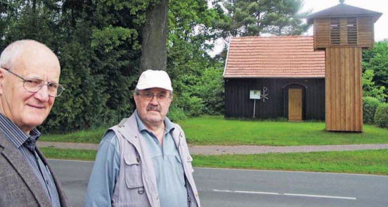 Beide Männer, Horst Simon und Horst Schrecke, sind im Kirchengemeinderat. Sie können sich gut leiden und freuen sich, dass die Kapelle in Schwanheide seit kurzem einen neuen Glockenturm für die knapp 400 Jahre alte Glocke hat. Der noch gar nicht so alte Glockenturm aus den 1990er-Jahren musste abgerissen werden – er war bereits marode. Die rund 300 Kilogramm schwere Glocke, die bis zum Abriss der Kirche 1978 in Zweedorf geläutet hatte, war schon drei Jahre zuvor ausgehängt worden. Es hatte die Gefahr bestanden, dass sie herunter fällt.
