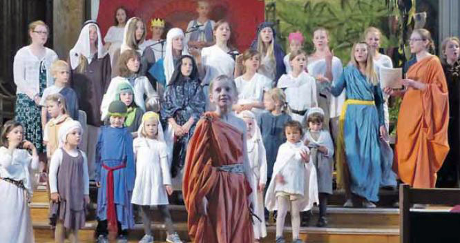 Das Lampenfieber ist noch gar nicht ganz verflogen: zwei Mal standen die Kinder der Greifswalder Domkinderchöre vor dem Publikum in der voll besetzten Jacobi-Kirche und zeigten ihr Musical vom „König David“. „Wir sind noch völlig im Bachwochentaumel“, sagt Eva-Christiane Schäfer, die gemeinsam mit Jochen A. Modeß die Chöre leitet. Denn die Aufführungen mit den gar nicht so einfach zu singenden Balladen rund um das Leben des großen Königs hatten für Begeisterung gesorgt. Und die Kinder wollen mehr! Zum Glück steht das nächste Großereignis schon am Sonnabend an: der Kinderchortag Mecklenburg-Vorpommern. Per Zug reisen 35 der beiden älteren Chorstufen dann nach Stralsund, im Gepäck die bereits gut geprobten Noten zum Musical „Die Speisung der 5000“.