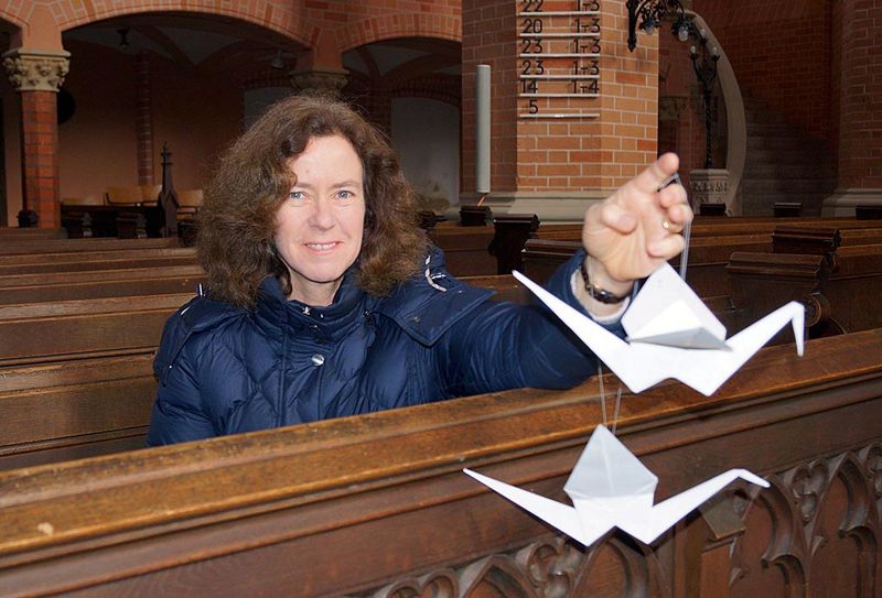 „Um die Kinder der Region an der Entstehung des ‚Garten Eden‘ zu beteiligen, haben wir dazu aufgerufen, Kraniche zu falten“, so Gundula Meyer, die sich im Ehrenamt unter anderem um die Planung des Begleitprogramms kümmert. Als Zeichen des Friedens sollen die Kraniche dann über den Pflanzeninstallationen schweben. In der Münchener Version waren es Tauben. Schulen, die Kraniche zum „Garten Eden“ beisteuern möchten, können sich an Gundula Meyer wenden. (Kontakt über die Kirchengemeinde: Tel.: 03998 433483
