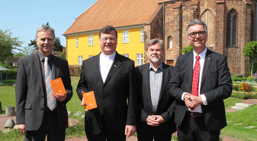 Mit Vorträgen, Lesungen und kurzen Workshops wurden am vergangenen Freitag (8. Mai) im Niederdeutschen Bibelzentrum St. Jürgen in Barth die „LebensWorte“ vorgestellt, eine Auswahl biblischer Texte für die Militärseelsorge. Herausgeber ist die Evangelische Seelsorge in der Bundeswehr. Kooperiert hat sie mit der Deutschen Bibelgesellschaft. Deren stellvertretender Vorsitzender, der Greifswalder Bischof Dr. Hans-Jürgen Abromeit, lobte das schmale orangefarbene Büchlein als "wunderschönes Produkt": "Gerade heute, am 70. Jahrestag des Kriegsendes, zeigt sich, dass die Bibel eine realistische Sicht auf das Datum erlaubt: Der 8. Mai 1945 war zugleich Kapitulation und Befreiung von einer widergöttlichen Gewaltherrschaft. Soldatinnen und Soldaten benötigen immer wieder eine Klärung der Perspektiven. Es ist gut, dass es nun eine handliche Gebrauchsbibel für die Tasche gibt, die sie immer bei sich haben können", sagte Abromeit.