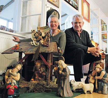 Zwei Ehepaare zeigen Krippen aus aller Welt in der Kirche Die Krippensammler