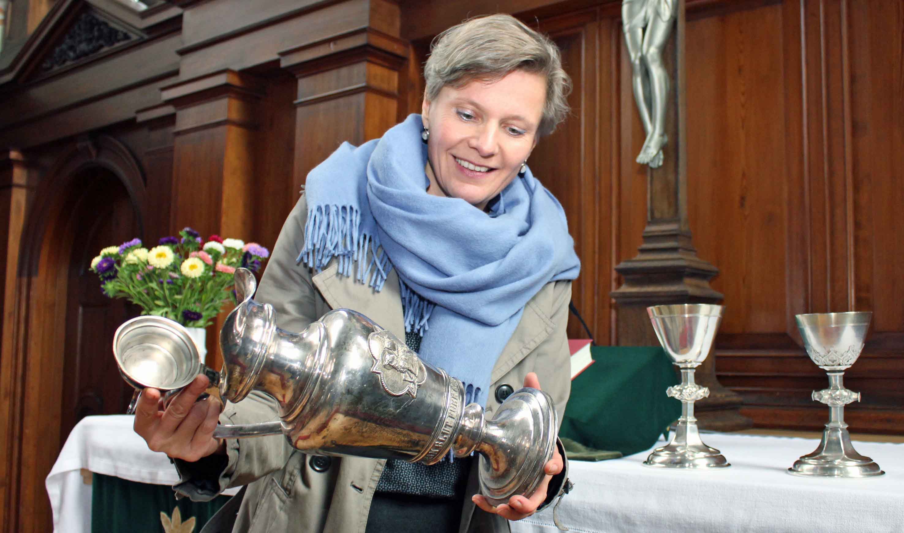 Eigentlich sind damit die beweglichen Kunstgegenstände in einer Kirche gemeint, es können aber durchaus auch Glasfenster sein oder eine Wandbemalung. Für Orgeln, Glocken und Uhren haben wir eigene Sachverständige. Im Vordergrund stehen für mich die Vasa Sacra - liturgische Geräte wie Kelch, Taufschale oder Altarkreuz. Ich berate die Kirchengemeinden, wie sie diese pflegen, restaurieren oder neu anschaffen. Ansonsten unterstütze ich bei Fragen zur Versicherung von Kunstgut und zu Leihverträgen mit Museen und arbeite mit den Ämtern für Denkmalpflege zusammen.
