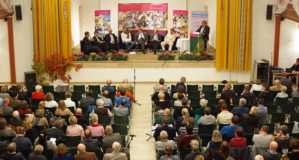 „Mein Wunsch ist es, dass sich die Kirche 2030 nicht in einem Strukturprozess befindet, sondern aufbauend auf die guten Ergebnisse des jetzigen Prozesses sich der Arbeit in der Gemeinde und dem Gemeinwesen hingeben kann“, sagte der Schweriner Bischof Dr. Andreas von Maltzahn am Ende einer Podiumsdiskussion auf die Frage: „Was wünschen Sie sich für die Kirche im Jahr 2030“. Staatsekretär Nikolaus Voss schloss sich diesem Wunsch an: „Wenn das gelingt, dann sollte Kirche viel Raum haben die Menschen da abzuholen, wo ihnen die gesellschaftlichen Probleme unter den Nägeln brennen. Diese Fragen in einen Dialog mit den Dingen des Glaubens zu bringen, das wünsche ich mir“.