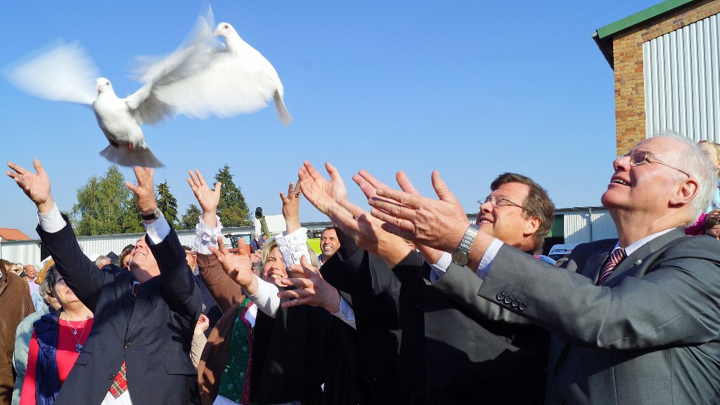 Nach dem Gottesdienst wurden weiße Tauben fliegen gelassen.