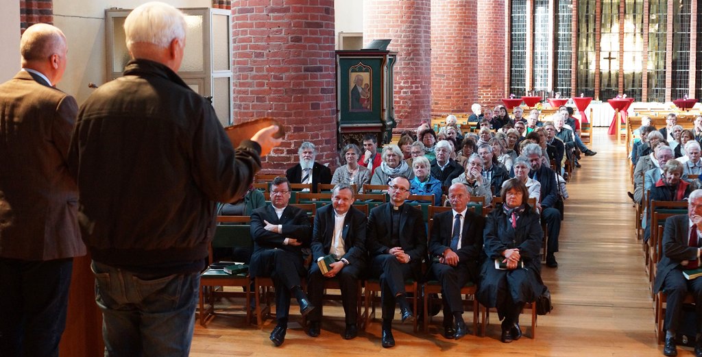 Im Namen des Pommerschen Evangelischen Kirchenkreises überbrachten Gerd Panknin und Andreas Haerter vor rund 100 Gästen in der Jacobikirche Grüße an Christoph Ehricht