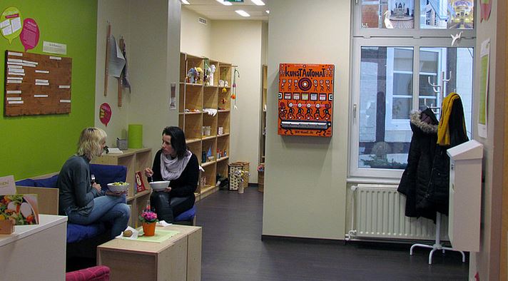 Jenseits dieser Höhepunkte nutzten Menschen den Kirchenladen, sagt Petra Bittner, um sich niederzulassen, an der Hörbar christlichen Radiofunk oder die Bibel als Hörbuch zu hören, an der sogenannten Schreibstelle Gedanken zum Glauben aufzuschreiben, an der Druckstelle Verse, Grüße und anderes zum Mitnehmen und Verschenken zu produzieren, sich christlich geprägte Kunst aus dem Kunstautomaten zu ziehen, sich über Veranstaltungen in den Kirchengemeinden zu informieren, Kirchenzeitung zu lesen oder bei Irre Schön, der Kreativwerkstatt der Ramper Werkstätten, eben schöne Dinge zu kaufen. Der kleine Raum, in dem der Kirchenladen untergebracht war, wird künftig vom „Salädchen“ genutzt. Das „Salädchen“ im vorderen Teil ist ein Bistro, das zu einem bundesweit tätigen franchise Unternehmen gehört und als einziges in der Kette von einem gemeinnützigen Verein, dem Diakoniewerk Neues Ufer, betrieben wird.