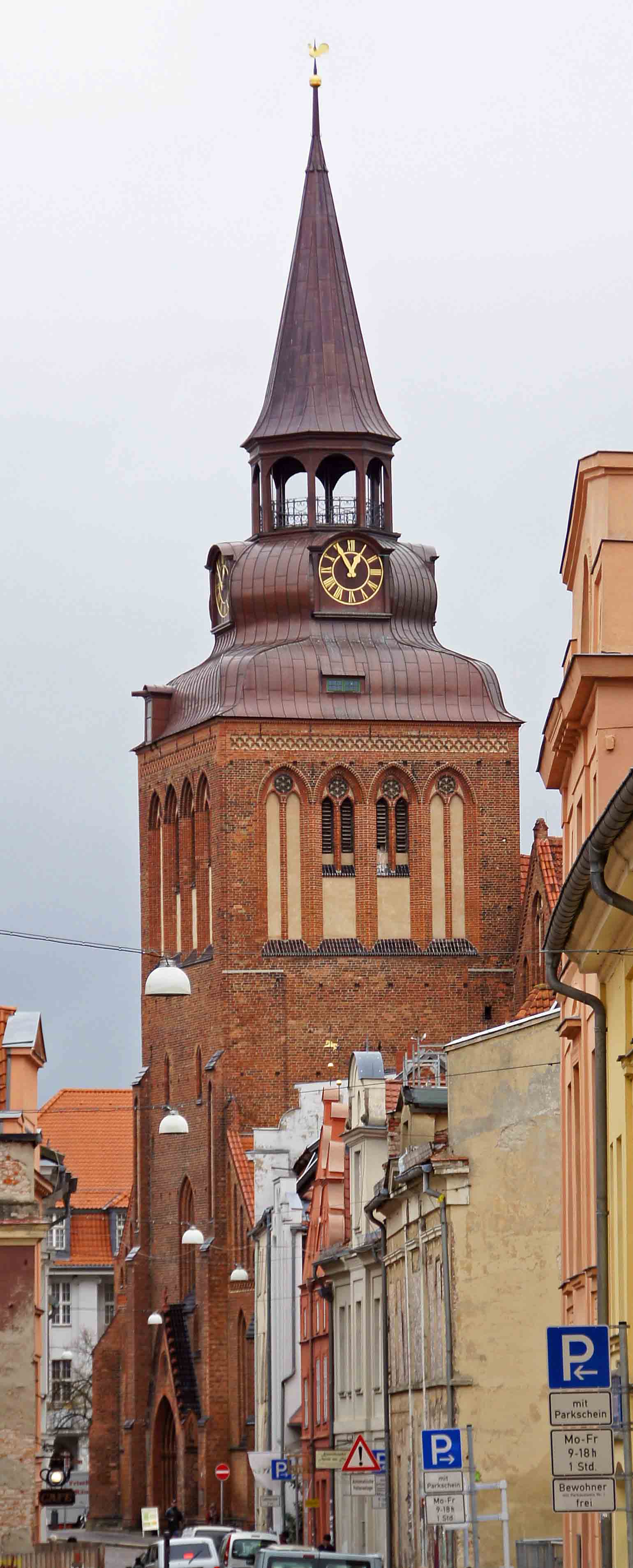 Die Stadtpfarrkirche wurde 1308 erstmals erwähnt. Im Juni 1503 fiel sie einem Stadtbrand zum Opfer. Bis 1508 wurde sie als Backstein-Neubau wieder aufgebaut. In den Jahren 1880 bis 1883 wurde der Sakralbau schließlich in eine dreischiffige Hallenkirche umgebaut. Dafür wurde ein Teil des spätmittelalterlichen Baus abgerissen. Die erste lutherische Predigt in der Pfarrkirche wurde im Juni 1533 gehalten.
