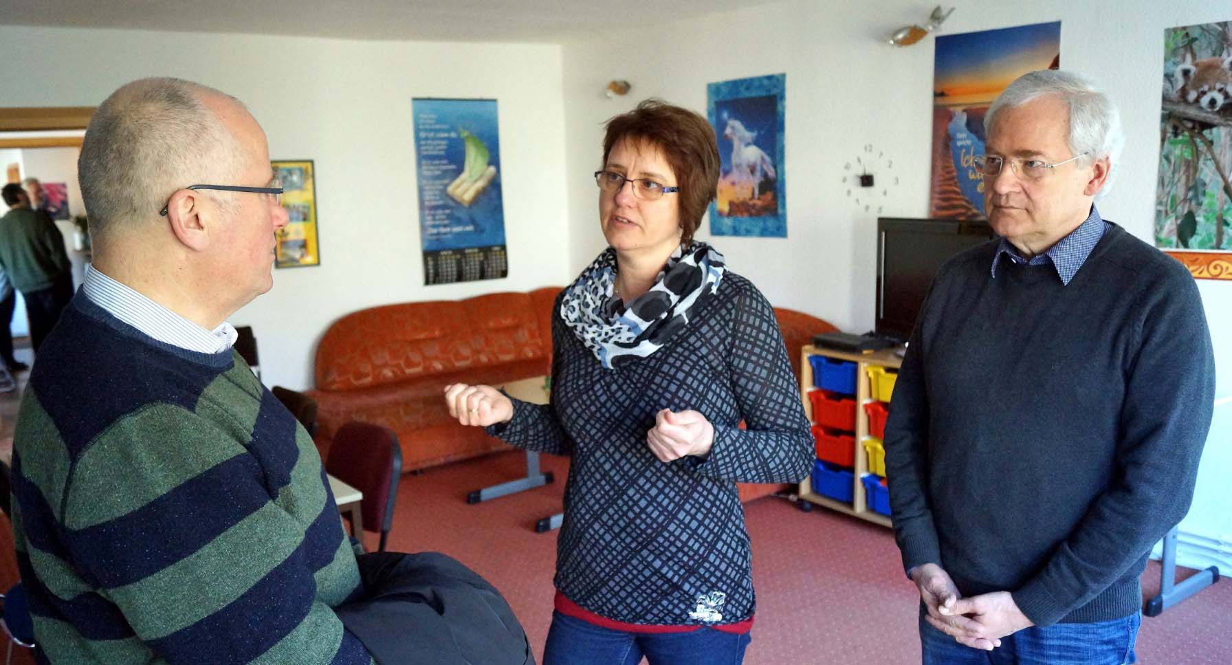 Am 8. März besuchte Gerd Panknin, begleitet von Ernst Wellmer, unter anderem die Tagesgruppe sowie die Kinder- und Jugendhilfestation der Kirchengemeinde in der Marktstraße 166. In der Tagesgruppe kümmern sich ab der Mittagszeit zwei Erzieherinnen um sechs Kinder aus schwierigen Verhältnissen. „Unser Konzept der Intensivbetreuung ist sehr erfolgreich. Kinder, die eigentlich keine Chance haben, werden so betreut, dass Defizite ausgeglichen werden“, sagte Pastor Bernd-Ulrich Gienke. „Für die Kinder, die hier betreut werden, öffnen sich ganz andere Türen, sie bekommen vielfältige soziale Kontakte und Zugang zu Gruppen, den sie sonst nicht hätten. So ist die Einrichtung für diese Kinder eine Brücke in die Normalität.“ Petra Frenk, die seit fünf Jahren in der Tagesgruppe tätig ist, ergänzte die Einschätzung des Pastors: „Wir haben eine Erfolgsquote von 80 Prozent. Ein Erfolg, der auch der vertrauensvollen Zusammenarbeit mit dem Jugendamt zu verdanken ist. Das Feedback aus der Schule bestätigt unsere Arbeit. Wir hören von dort häufig, dass die Fortschritte der Kinder, die bei uns betreut werden, deutlich spürbar sind.“ Die Tagesgruppe sei selbstverständlich offen für Kinder jeglicher Konfession und auch für Konfessionslose. „Aber natürlich herrscht hier der gute christliche Geist“, so Petra Frenk.