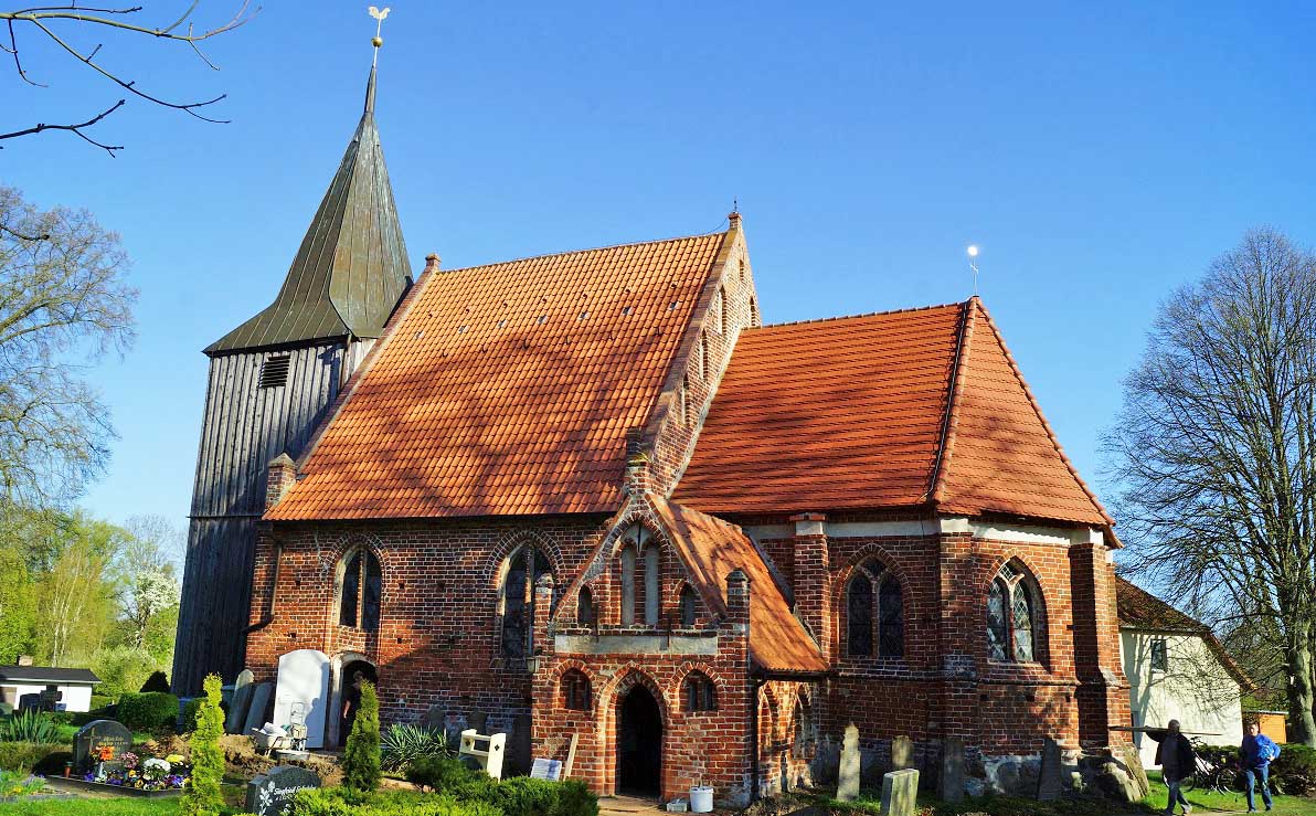 Bereits am vergangenen Sonnabend (7. Mai) wurden Kirche und Außengelände bei einem abschließenden Einsatz für das große Fest am Pfingstmontag hergerichtet und gründlich von den letzten Spuren der umfangreichen Arbeiten gesäubert. Ein Schwerpunkt der aufwendigen Sanierung war neben der Trockenlegung der Kirche auch die Wiederherstellung der Wegekapelle am Friedhofseingang. Irmfried Garbe: „Die Kapelle hat jetzt ein gefestigtes Mauerwerk und ihr wunderschönes Fenster zurückerhalten und das neue Friedhofstor zwischen den alten Wächterpfeilern lädt zu künftigen Begegnungen ein. Der Altaraufsatz in der Kirche auf seiner neuen, würdigen Altarplatte ist frisch restauriert, ein ziegelroter schwellenfreier Fußboden taucht den Raum in warmes Licht, eine moderne Elektrik hilft bei der Beleuchtung der Räume und Wege, der uralte Taufstein bildet wieder die Mitte der Gemeinde.“