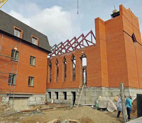 Doch von diesem Größenwahn profitieren nun auch die Lutheraner. So berichteten Hans-Heinrich Jarchow vom mecklenburgischen Helfer- und Spenderkreis Kasachstan, der zusammen mit Claus Röschmann aus Schleswig-Holstein im September die Lutheraner in Kasachstan besuchte, dass schon der Rohbau des Gemeindezentrums imposant sei. Und Tilman Jeremias, Ökumene-Pastor im Kirchenkreis Mecklenburg, der mit einer weiteren Delegation des Helfer- und Spenderkreises Mitte Oktober zur Synode in Astana angereist war, berichtet: „Der Rohbau für das dreistöckige Verwaltungsgebäude steht; es ist ein großzügiger Bau, der neben den Büros für die Mitarbeitenden Gästezimmer und Gemeinderäume für die lutherische Gemeinde Astana beherbergen soll. Hier kann im Winter mit dem Innenausbau begonnen werden. Bei der Kirche stehen nur die Außenwände, das Dach fehlt noch.“