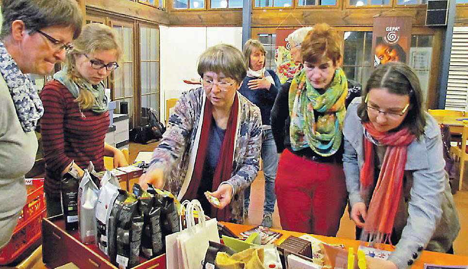 Das Fairtrade-Siegel ist das Erkennungszeichen für fair gehandelte Waren in Supermärkten. In Naturkostläden taucht inzwischen immer häufiger die Naturland-Fair-Zertifizierung auf, die für bio-faire Produkte steht. Lutz Heiden vom Fair-Handels- Haus GEPA in Berlin ließ die rund ein Dutzend Teilnehmerinnen der Veranstaltung verschiedene Kaffees und Tees verkosten. Zudem gab er interessante Hintergrundinformationen und Wissenswertes zum Einsatz der Produkte im Kirchenalltag.