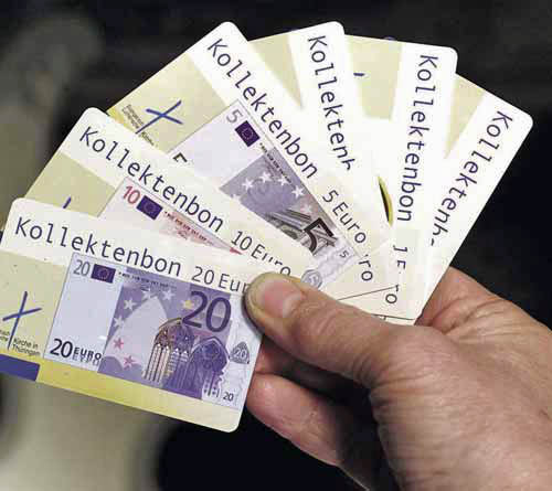 Doch es gibt Alternativen. So tauschen die Filialen der Bundesbank in Rostock und Neubrandenburg nicht nur die alte D-Mark, die sich in die Kollekte verirrt hat, sondern nehmen auch gebührenfrei Kleingeld an. Eine andere Alternative sind Kollektenbons, wie in Bad Frankenhausen, Gotha und Weimar schon eingeführt: Gottesdienstbesucher kaufen zum Beispiel einen Bogen für 30 Euro mit mehreren Bons in Stückelungen und entscheiden dann je nach Kollektenzweck, wie viele Bons sie ins Körbchen werfen wollen.