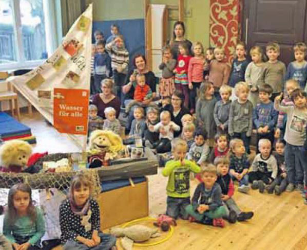 Die Betrachtung erfolgt aus verschiedenen Perspektiven, praktisch von klein zu groß. Die Jüngsten bringen ihr selbst gebasteltes Brot-für-die-Welt-Schiff in die Kirche, das ein Jahr als Spendenbox dienen soll. Schon seit einer Woche beschäftigen sie sich gemeinsam mit Gemeindepädagogin Andrea Lehnert intensiver mit dem Thema Wasser. Sie besingen den Kreislauf, sprechen über den Wert dieser Gottesgabe und erfahren, dass es woanders viele Menschen gibt, die nicht einmal sauberes Trinkwasser haben, schon gar keines zum Duschen.