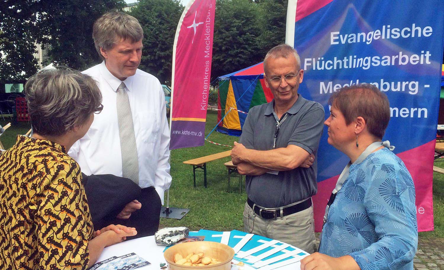 Deutscher: Überall im Land sind ehrenamtliche Netzwerke entstanden, und oft hat sich eine gute Zusammenarbeit zwischen Haupt- und Ehrenamtlichen entwickelt. Ehrenamtliche Deutschkurse waren von Anfang an ein großes Thema, das immer noch aktuell ist. Denn auch wenn sie schon einige Zeit hier sind, brauchen Erwachsene und Kinder dabei Unterstützung. Ein neues Thema, das viele Gemeinden beschäftigt, ist der Islam. Die Pommersche Synode hat deshalb eine Handreichung zum christlich-islamischen Dialog herausgegeben. Wichtig bleibt die Möglichkeit zur Begegnung, damit neue und alteingesessene Nachbarsleute sich kennenlernen, etwa in internationalen Cafés. Solche Begegnungen wirken sich sehr positiv auf das demokratische Miteinander aus. Inzwischen werden die Asylsuchenden aber aus Kostengründen aus den kleineren Orten wieder zurückverteilt in größere Gemeinschaftsunterkünfte. Damit geht die Chance, Fremdheit vor Ort zu erleben und mit ihr vertraut zu werden, leider vielerorts wieder verloren.