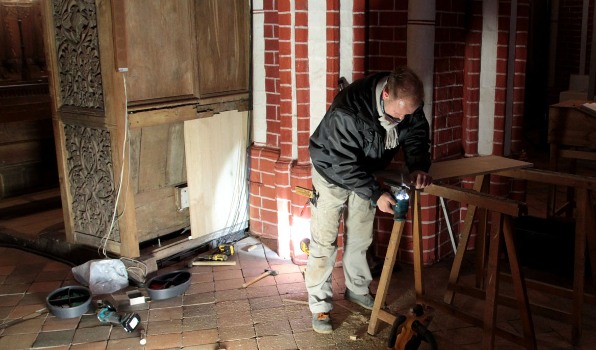 Die Restaurierung des Sakramentsturms im Doberaner Münster soll in diesem Frühjahr abgeschlossen werden. Dabei handelt es sich um einen mehr als elf Meter hohen frei stehenden Holzturm am Hochaltar des Münsters, in dem früher die Hostien aufbewahrt wurden. An den oberen Ebenen des Turms erfolgten die Arbeiten bereits zwischen November und Weihnachten 2016, für die unteren Ebenen sollen sie bei wärmeren Temperaturen im März oder April fortgesetzt werden. Das Schnitzwerk aus Eichenholz stammt aus der Zeit um 1360/70. Es ist der älteste Sakramentsturm in Deutschland.