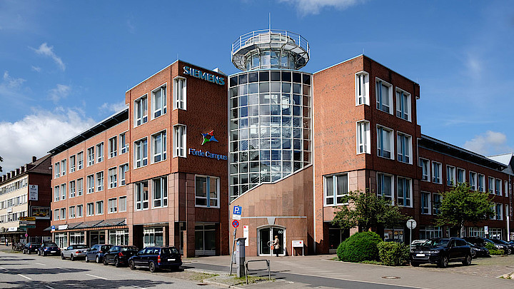 Das viergeschossige Büro- und Geschäftsgebäude hat einen turmartig verglasten Treppenaufgang und verfügt über 5.240 Quadratmeter Bürofläche, 680 Quadratmeter Ladenfläche und rund 2.000 Quadratmeter Lagerfläche. Eine Arbeitsgruppe hatte seit 2015 nach einem dauerhaften Standort für die Verwaltung gesucht.