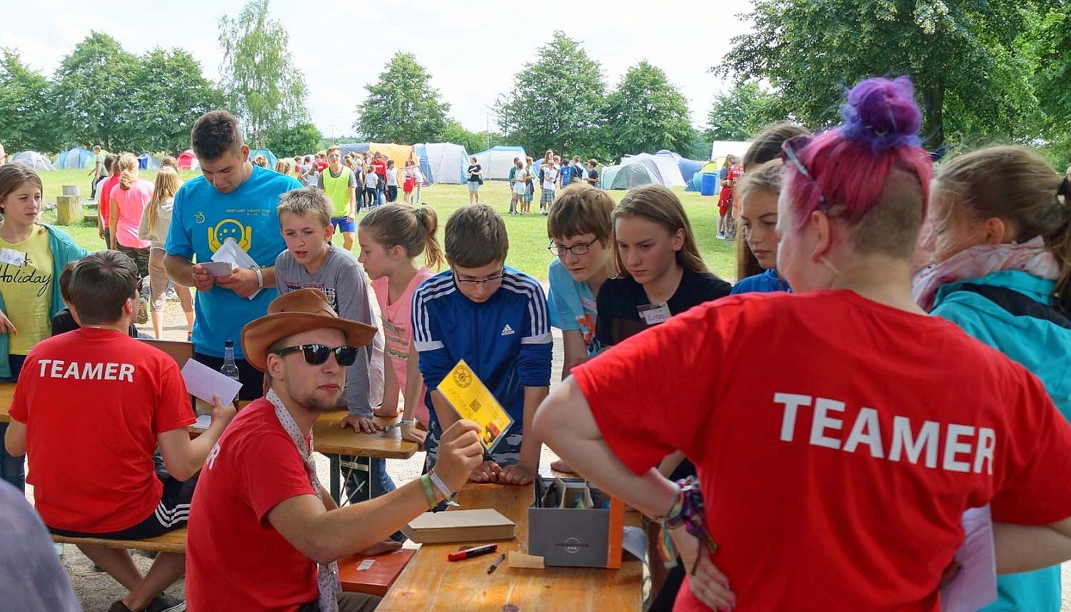 „Gebt uns mal Deckung, damit wir nicht beim Glücksspiel erwischt werden.“ Ein Konfirmand zieht eine Karte – und verliert. Heimliches Zocken auf der Konfirmandenfreizeit? Pastor Mathias Thieme von der Konfirmandenarbeitsstelle des Pommerschen Evangelischen Kirchenkreises klärt mit einem Schmunzeln auf: „Das gehört zu unserem großen Geländespiel für die Konfis zum Thema Reformation.“ Konfis, so werden die Konfirmandinnen und Konfirmanden zeitgemäß abgekürzt. Und Konficamp heißt dementsprechend das jährliche Konfirmandentreffen im Schullandheim Sassen. Während des Geländespiels lösten die Jugendlichen ein ausgefeiltes Rätsel. In 18 Gruppen aufgeteilt, ging es dabei um Gruppendynamik und Teamarbeit. Ganz nebenbei lernten sie spielerisch etwas von der Bedeutung der Reformation, über den spätmittelalterlichen Ablasshandel und die Hoffnungskraft des Evangeliums.