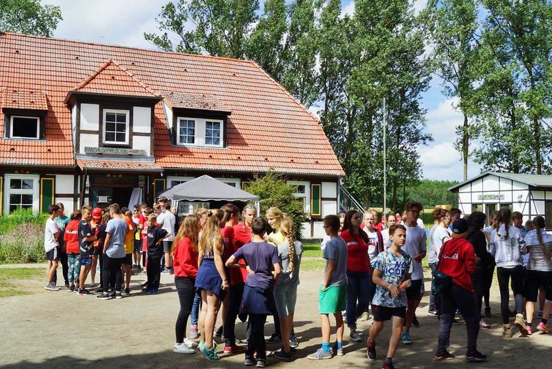 Das Geländespiel zur Reformation war nur einer der vielen Höhepunkte während des diesjährigen Konficamps im Landschulheim Sassen, an der rund 160 Konfirmandinnen und Konfirmanden teilnahmen. Betreuung und Organisation lagen dabei nicht nur in der Hand des siebenköpfigen Teams aus hauptamtlich Mitarbeitenden, sondern vor allem in der Verantwortung der rund 70 beteiligten Teamer – das sind Jugendliche, die eine Qualifizierung zur Jugendarbeit absolviert haben. Übrigens während einer Ausbildung, die ebenfalls im Schullandheim in Sassen stattfand. Haus und Gelände liegen rund 20 Kilometer südwestlich von Greifswald inmitten weitläufiger Felder. Ein idealer Platz für Jugendfreizeiten. Das hat sich nicht nur in Pommern, sondern auch schon im Nachbarkirchenkreis herumgesprochen. Aus Mecklenburg waren wie schon im Vorjahr wieder Konfirmanden in Sassen dabei. Die Anfänge des jährlich stattfindenden Konficamps reichen zurück nach Verchen, wo es aus einem kleinen regionalen Treffen entstand. Da es mit der Zeit immer beliebter und größer wurde, findet es mittlerweile seit elf Jahren im Schullandheim in Sassen statt.