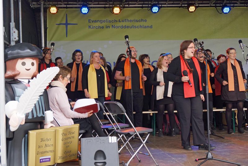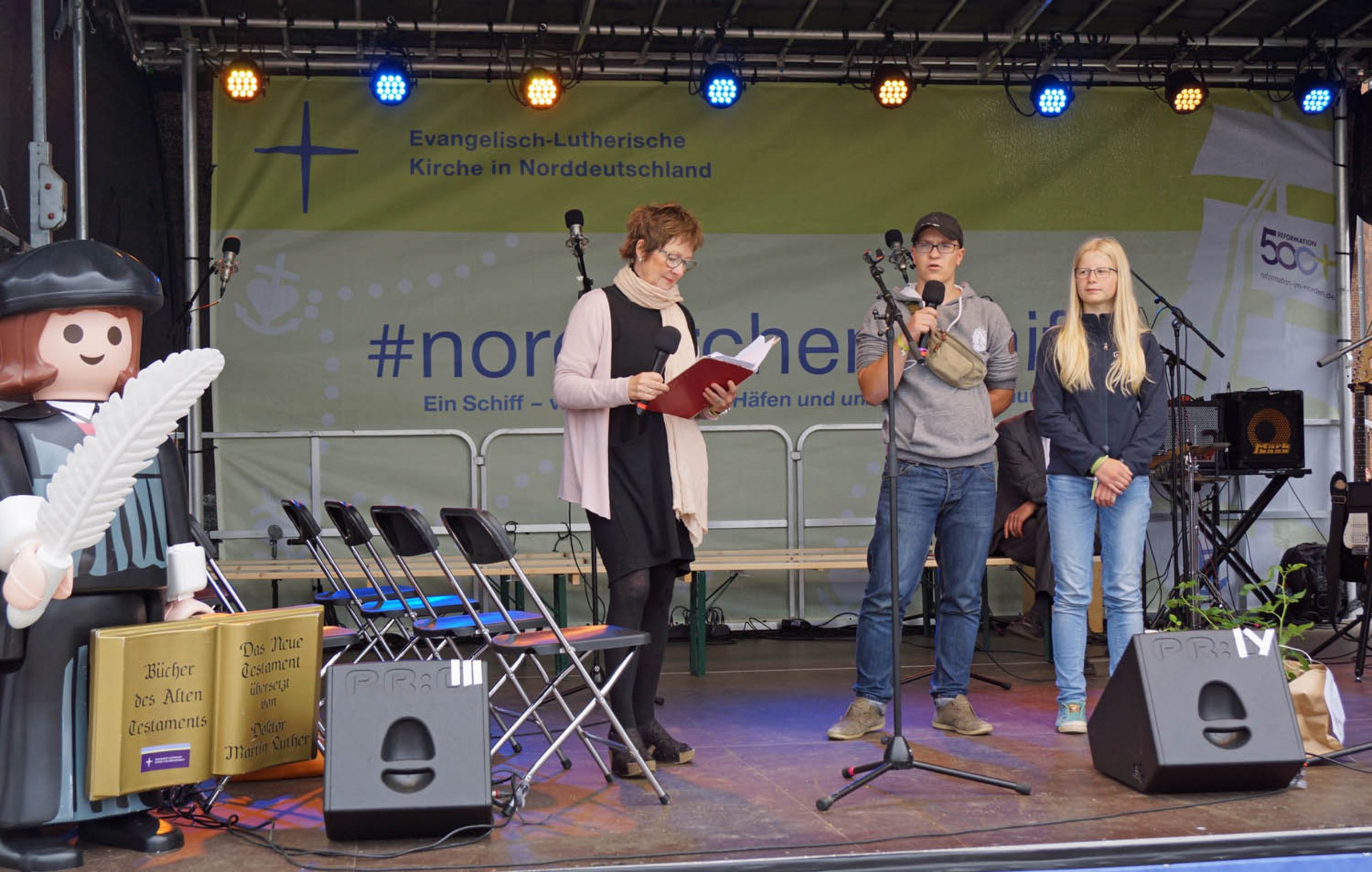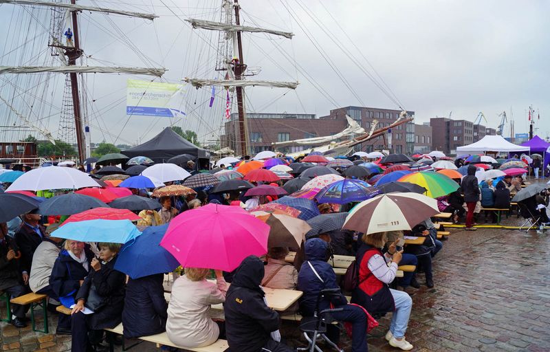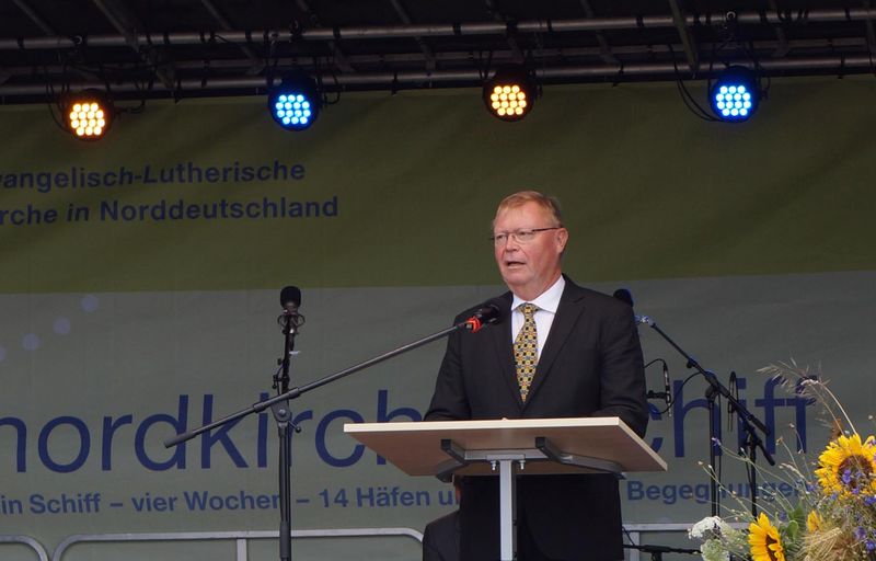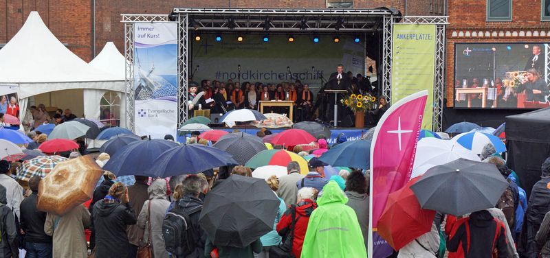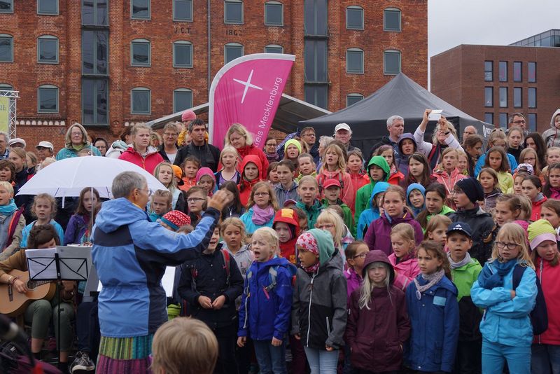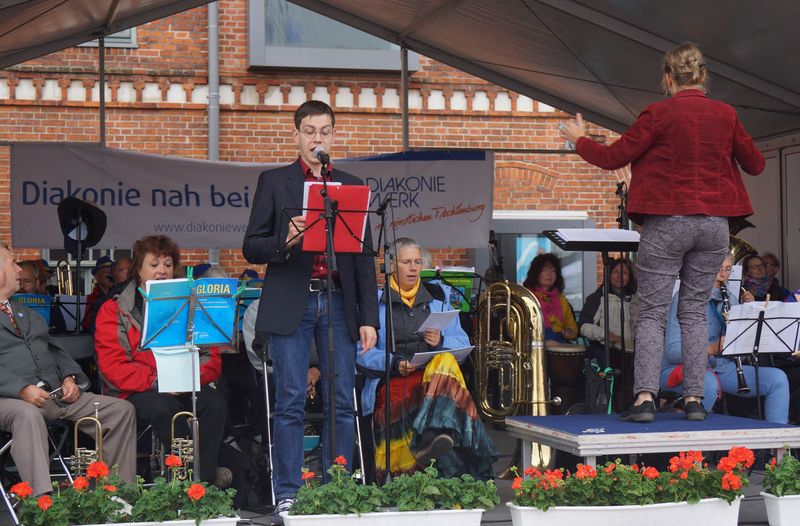 Vor dem Gottesdienst überbrachte Michael Berkhahn die Grüße der Hansestadt Wismar. "Dafür, dass Sie sich unsere Stadt ausgesucht haben und uns mit dieser großartigen Veranstaltung beehren, danke ich Ihnen recht herzlich", sagte der stellvertretende Bürgermeister. Am Nachmittag gab es bei besserem Wetter bis 18 Uhr ein buntes Programm auf zwei Bühnen, Kinderspiel- und Mitmachangebote sowie zahlreiche Informationsstände.