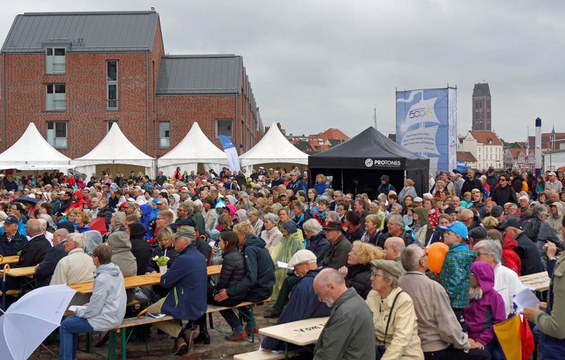 Reformationsfest "Frei wie der Wind“ in Wismar 1500 Menschen feiern Freiluft-Gottesdienst vor Nordkirchenschiff