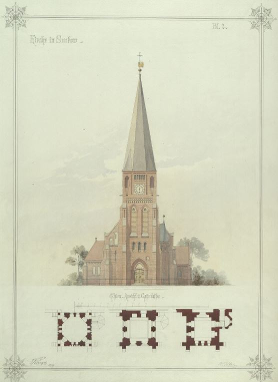 Auch das Landeskirchliche Archiv Schwerin macht bei der Digitalen Bibliothek MV mit: Beispiel: Kirche in Suckow - Turm, Ansicht und Grundrisse