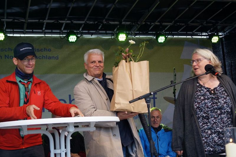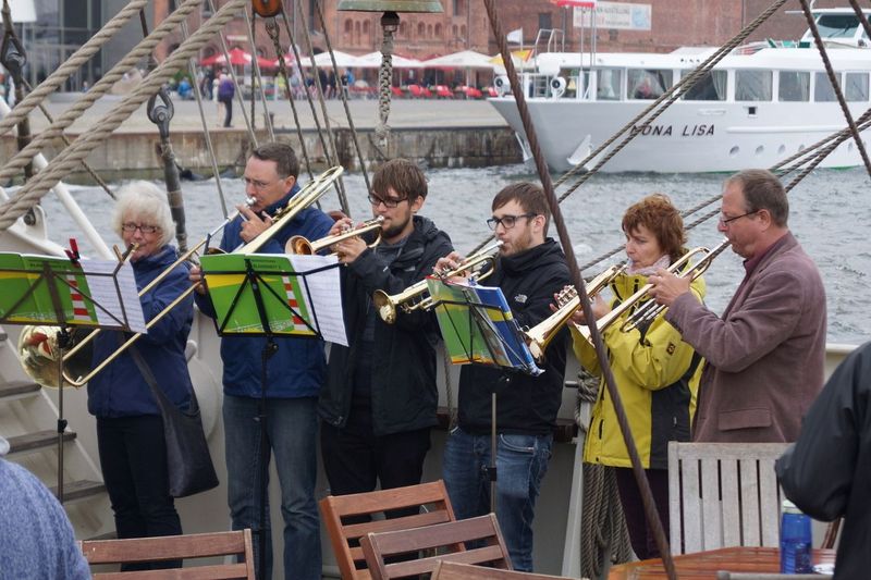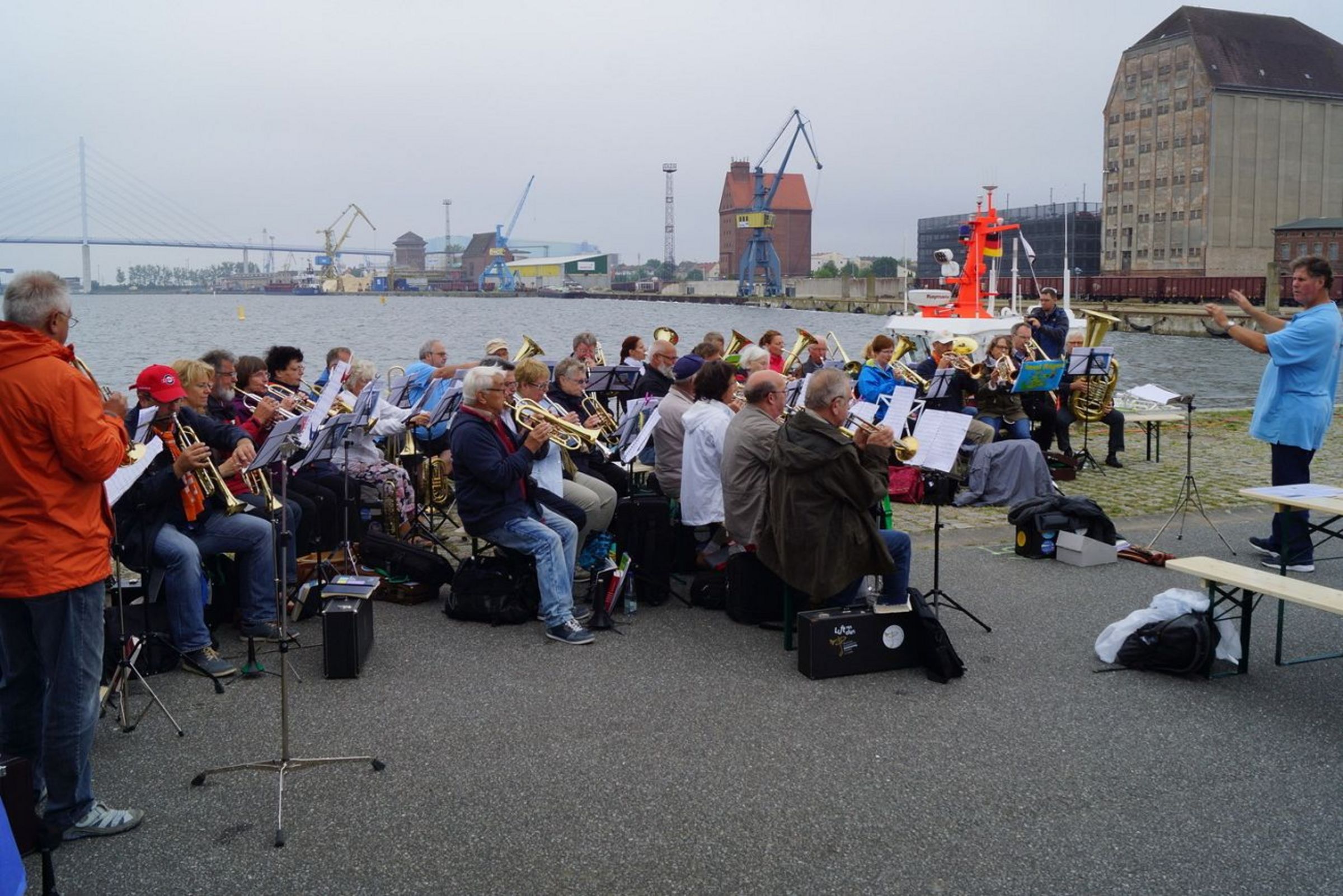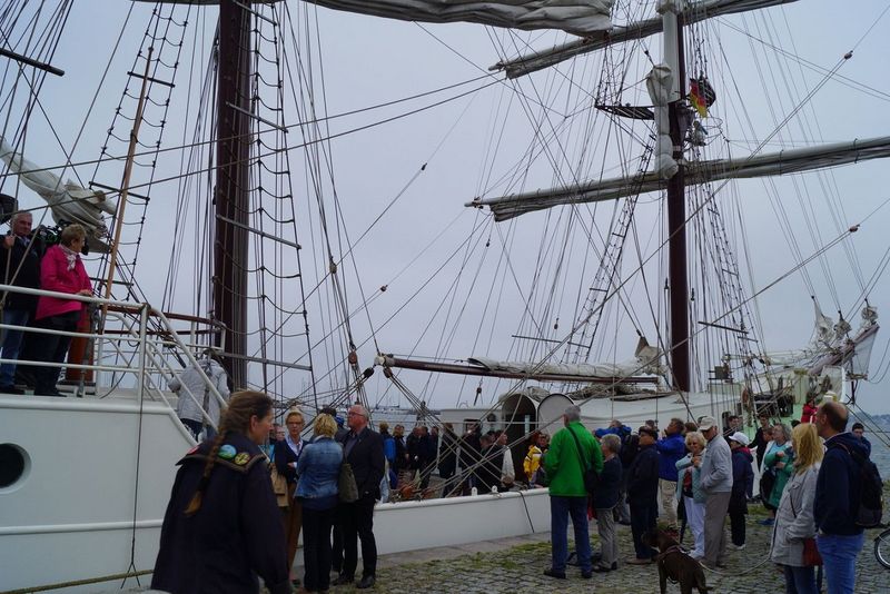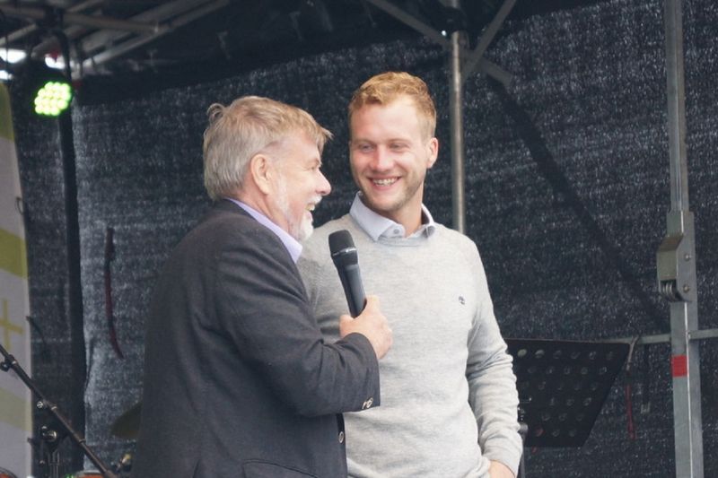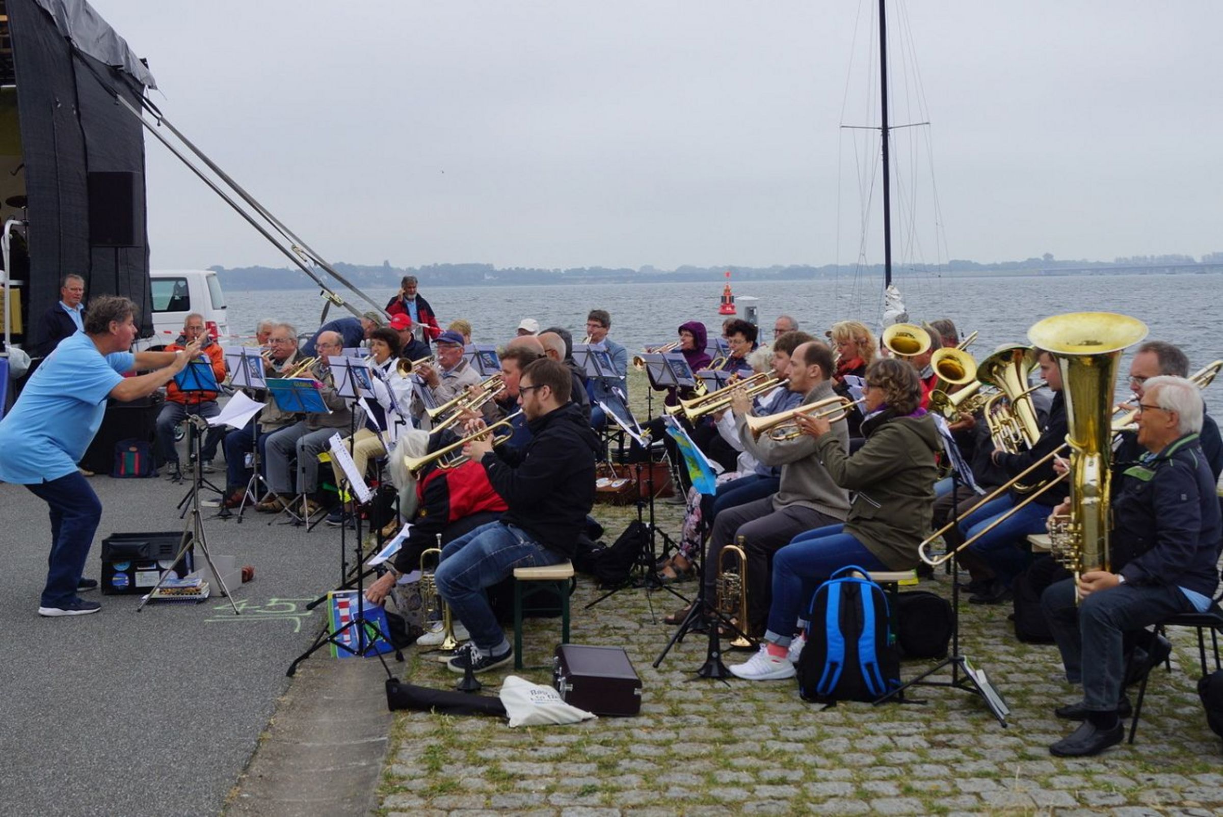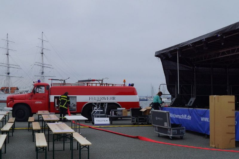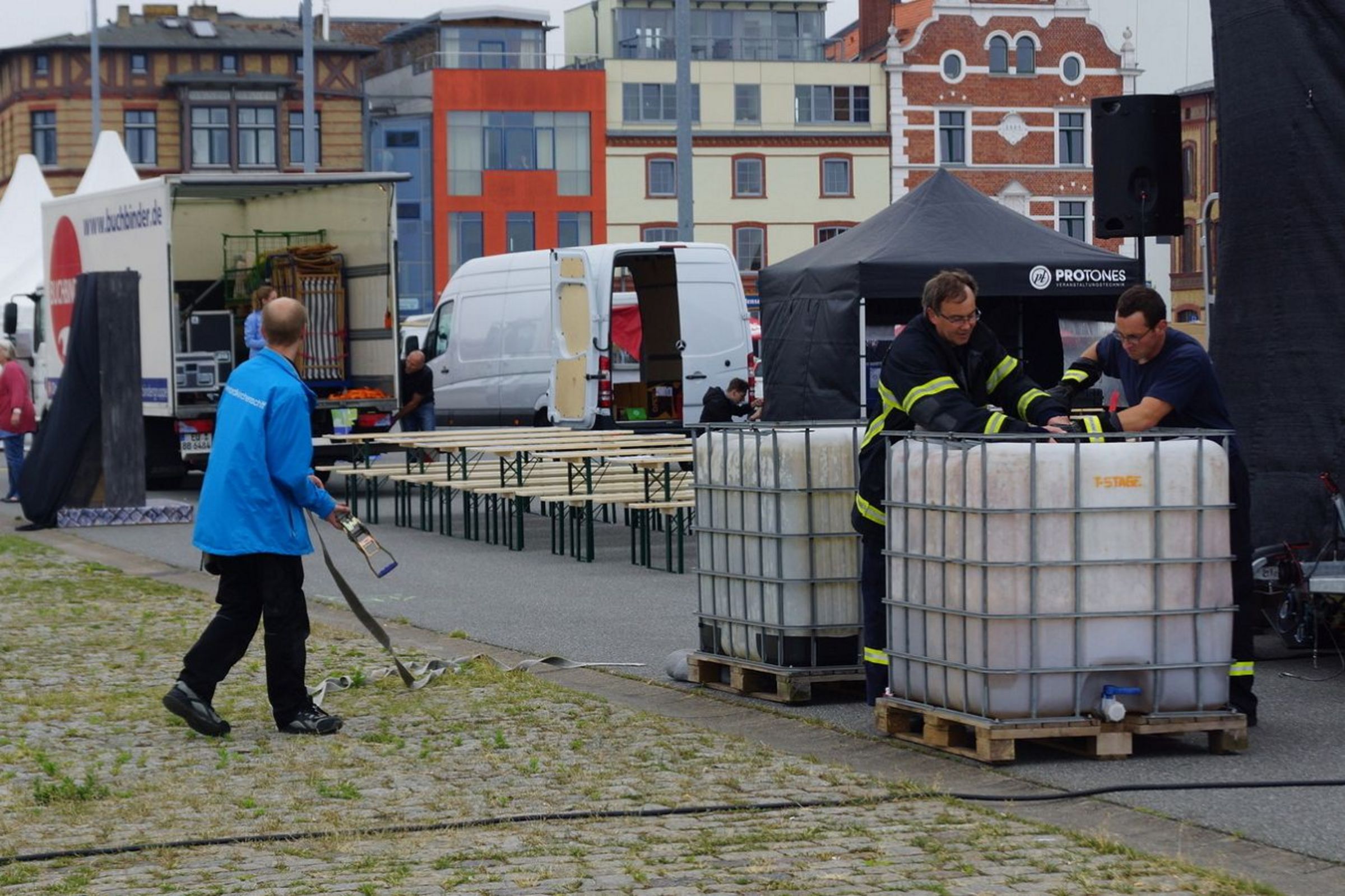 Dabei waren die äußeren Umstände alles andere als optimal. Zwar blieben die angekündigten Regenschauer und Gewitter aus, doch die herbstlich anmutenden Temperaturen erschwerten die Festbedingungen. Zudem konnte das Nordkirchenschiff, das im Rahmen des KirchenKreisFests zu seiner großen Reise entlang der Nordkirchenküste aufbrach, wegen der für die Nacht angekündigten schlechten Wetterlage nicht wie geplant von 15 bis 21 Uhr bleiben, sondern machte nur für rund eineinhalb Stunden an der Steinernen Fischbrücke fest. Doch in dieser Zeit drängten sich die Menschen um das Traditionsschiff und der Kirchenkreis bereitete dem segelnden Nordkirchenbotschafter nicht nur einen begeisterten Empfang, sondern begleitete auch den verfrühten Start mit Musik und Segenswünschen. Und so hieß es entsprechend dem Motto des am Nachmittag stattfindenden Gottesdienstes: „Das Wort geht an Bord“!
