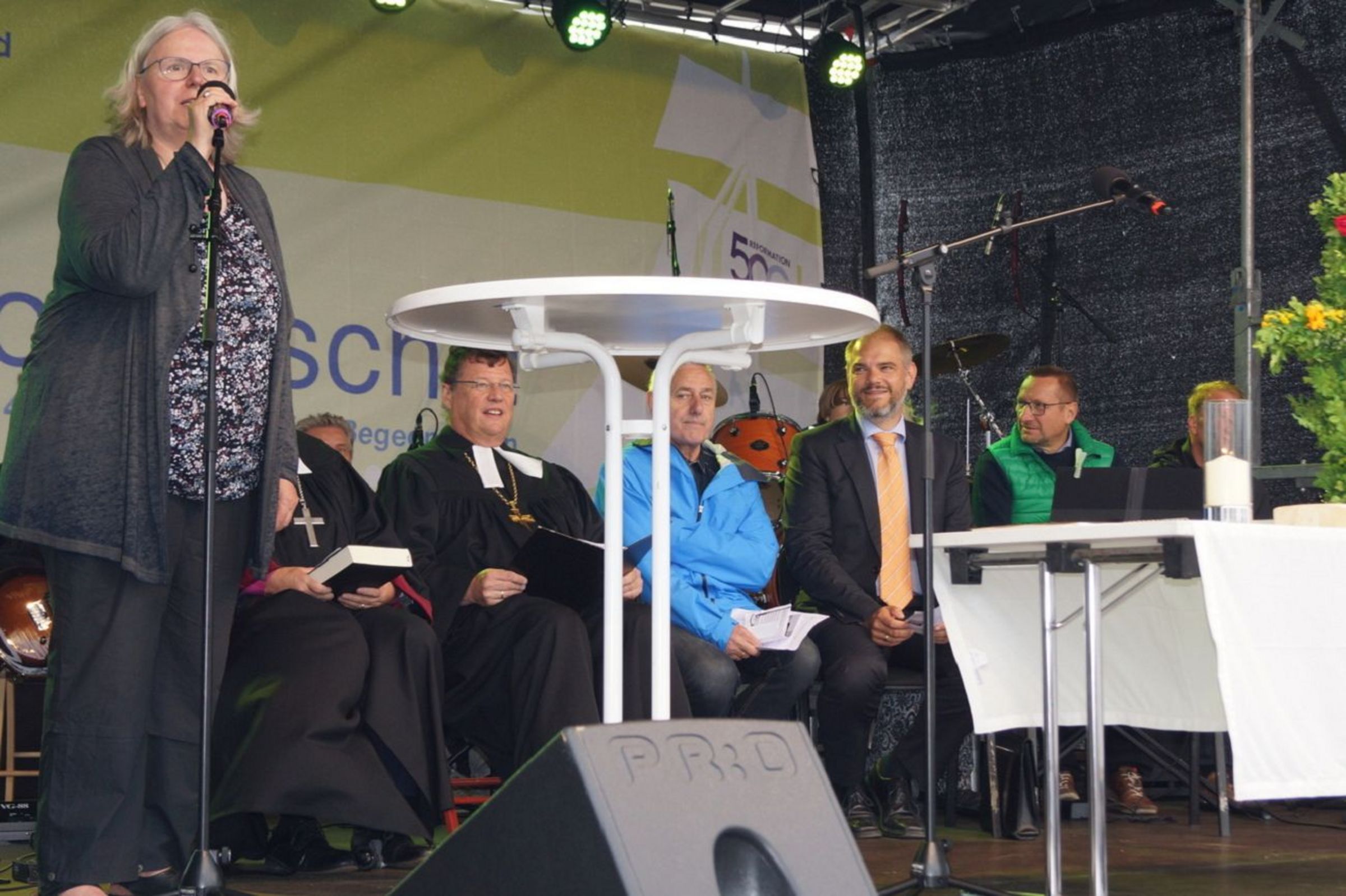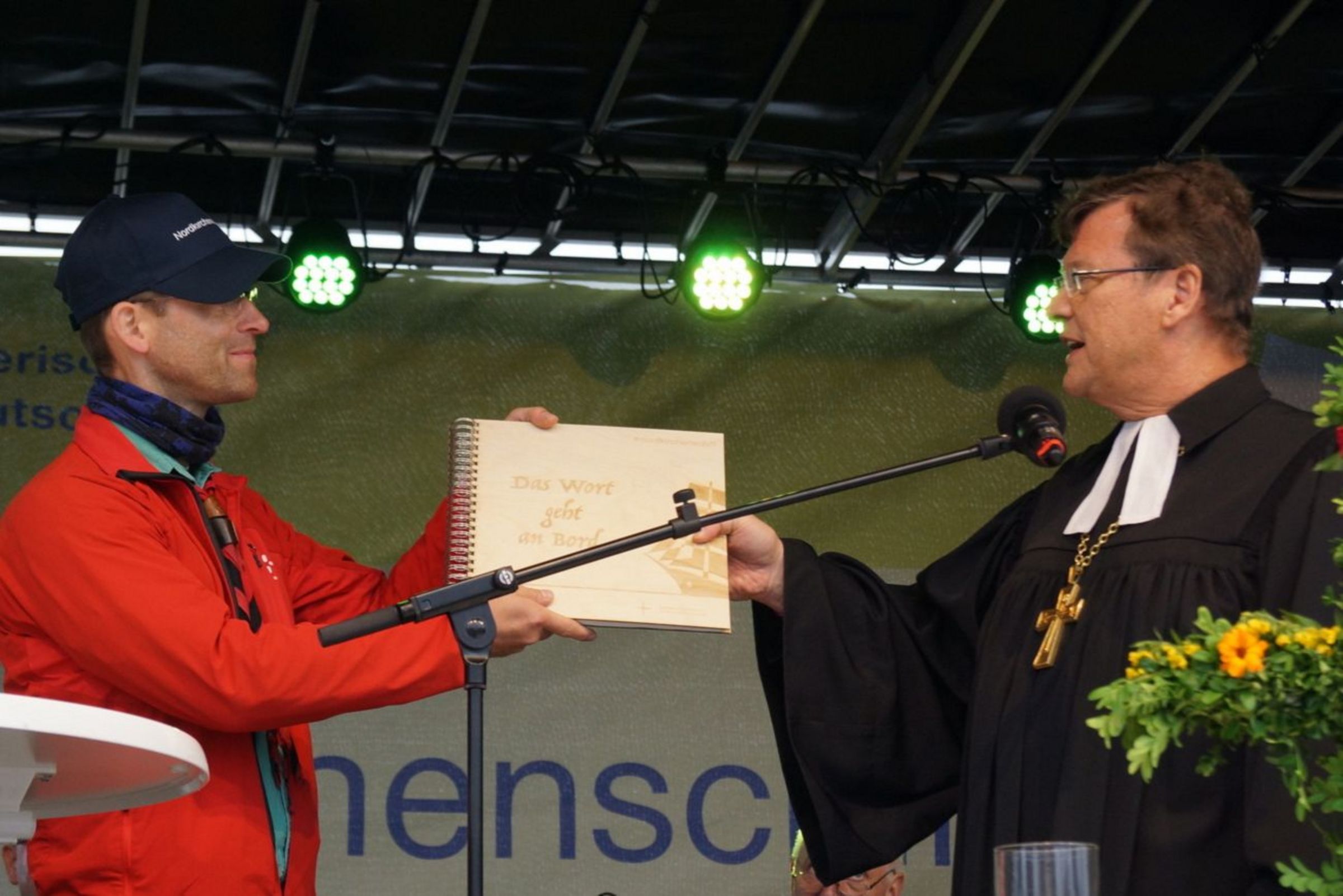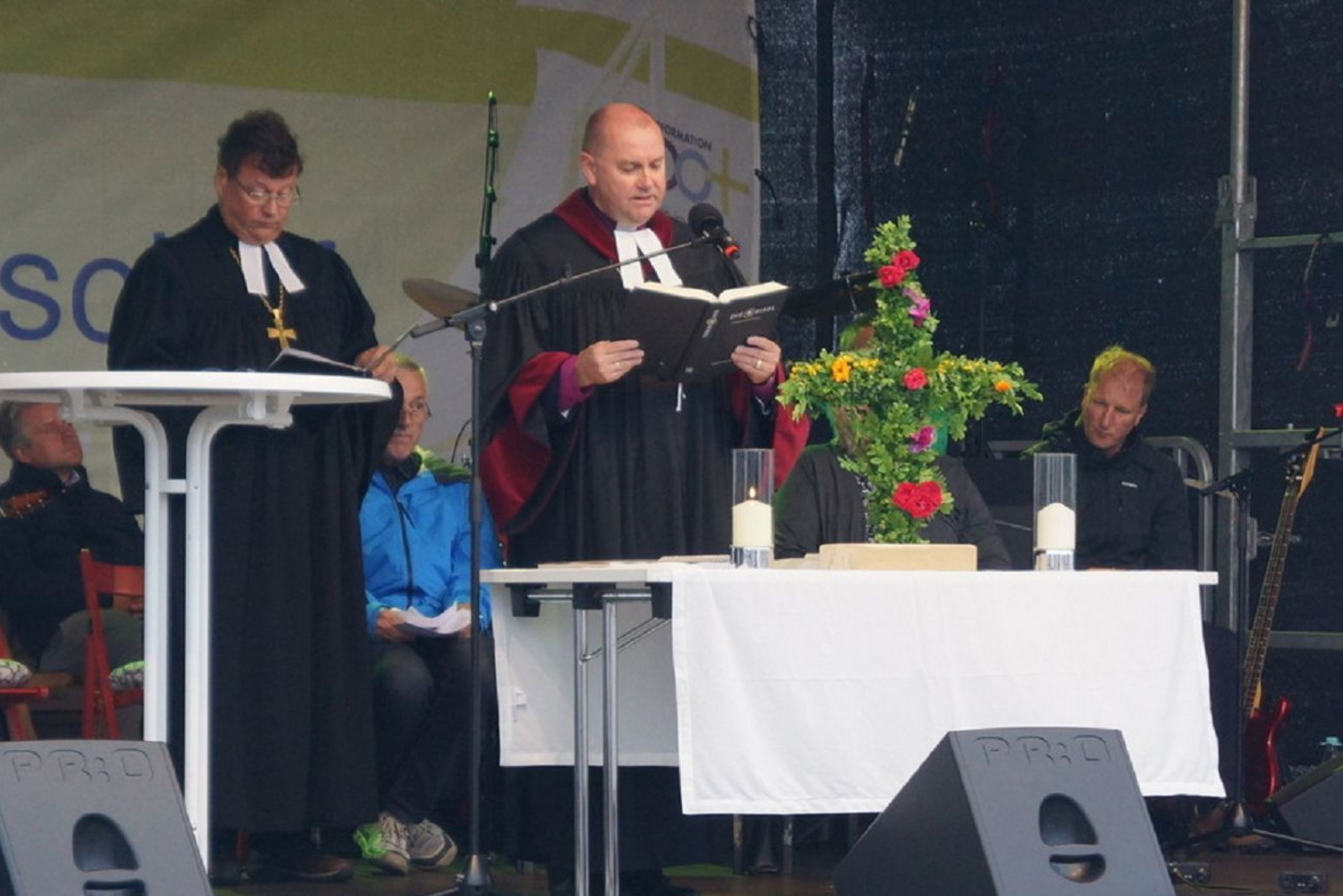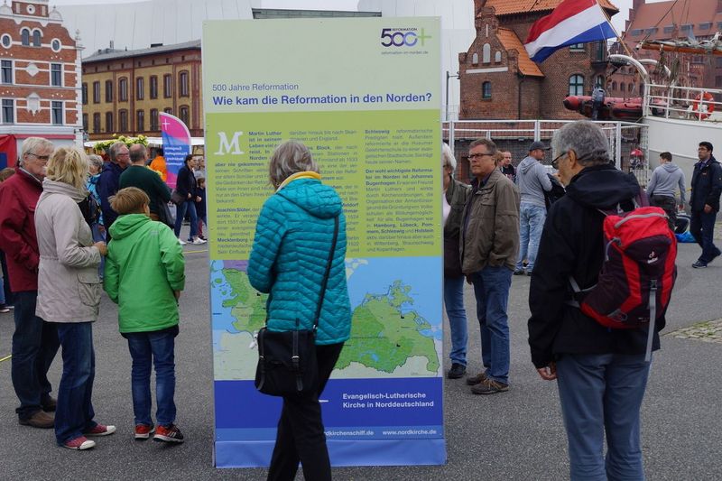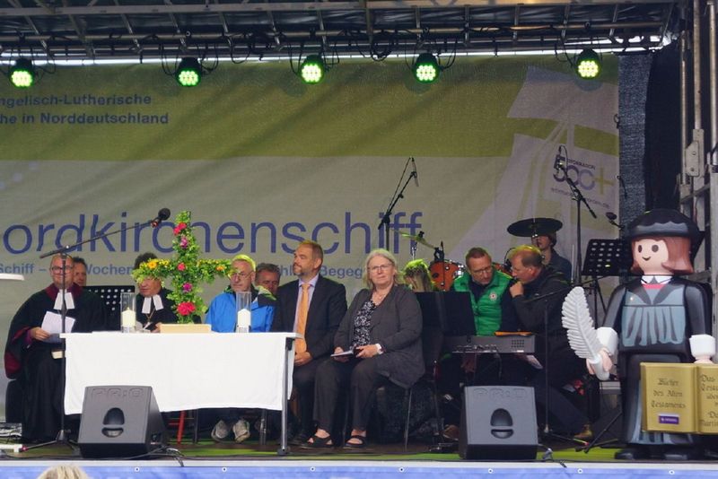Der Greifswalder Bischof Dr. Hans-Jürgen Abromeit wünschte der Besatzung und den Gästen zum Auftakt der Tour Gottes Segen. Und: „So wie Martin Luther in seiner Zeit Aufsehen erregt hat, wünsche ich auch dem Nordkirchenschiff, dass es Aufsehen erregt und Gesprächsthema für viele Menschen ist. Und ich wünsche der Crew und allen Helfern eine gute Zeit, viele positive Erfahrungen und eine behütete Reise.“ Für ihn habe das Nordkirchenschiff auch eine symbolische Bedeutung: "Unsere Kirche ist auch in Bewegung." Wie das Schiff befinde sich auch die Nordkirche "mal in ruhigeren und mal in stürmischeren Gewässern", sagte der Bischof im Stralsunder Hafen.