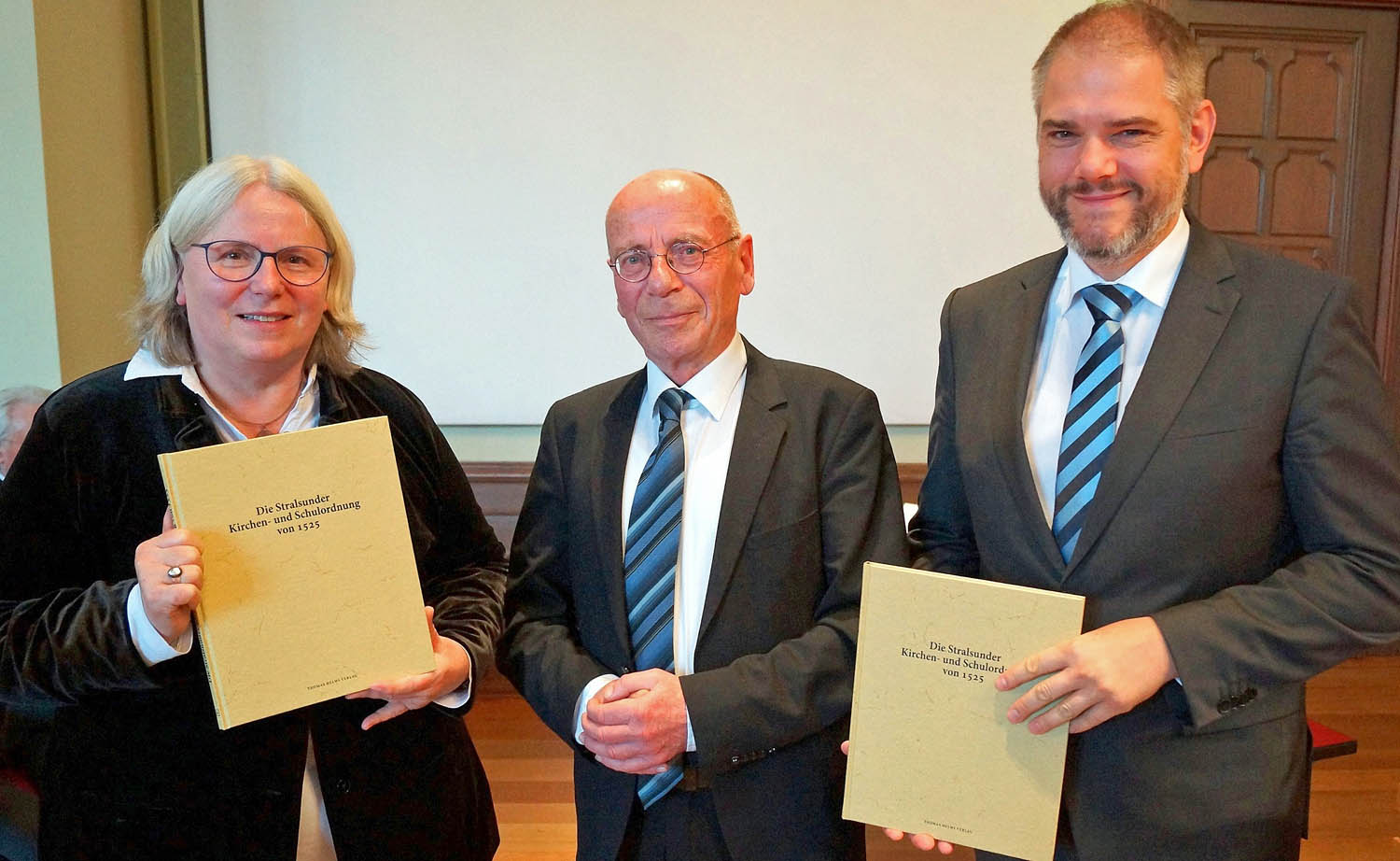 In Stralsund wurde das Reformationsjahr am heutigen 31. Oktober mit einem gemeinsamen Gottesdienst der Stralsunder Kirchengemeinden in St. Marien sowie mit einem anschließenden Festakt im Rathaus begangen. Auf Grußworte von Oberbürgermeister Dr.-Ing. Alexander Badrow, Pröpstin Helga Ruch und Andreas Sommer, Pfarrer der Katholischen Kirchengemeinde „Heilige Dreifaltigkeit“, folgten ein Festvortrag zur „Reformation in Stralsund“ sowie die Buchpräsentation „Die älteste Stralsunder Kirchen- und Schulordnung von 1525“. Den Abschluss bildete ein reformatorischer Gruß von Stralsunder Jugendlichen an den Oberbürgermeister.