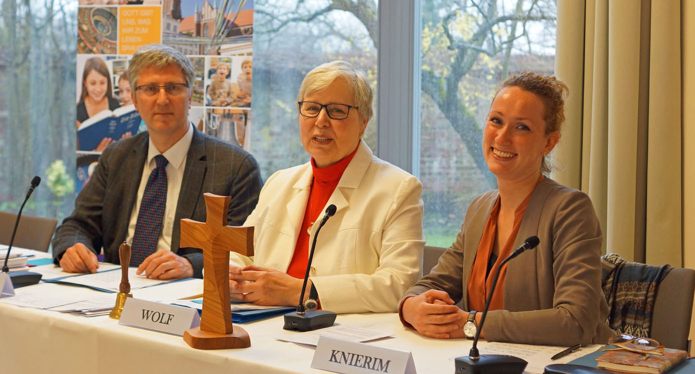 Pastorin Miriam Knierim wählten die Synodalen mit 50 abgegeben gültigen Ja-Stimmen zur 1. Vize-Präses. Die junge Theologin aus Hornstorf ist neu in der Synode. Als 2. Vizepräses bekam Dr. Christoph Heydemann mit 46 abgegebenen gültigen Ja-Stimmen das Vertrauen der Synodalen. Der Jurist aus dem brandenburgischen Fürstenberg, das kirchlich zu Mecklenburg gehört, war bereits zuvor Synodaler. Zusammen mit der Präses werden die Vizepräsides in den kommenden sechs Jahren für den ordnungsgemäßen Ablauf der Synodentagungen sorgen und die Umsetzung der Beschlüsse im Auge behalten.